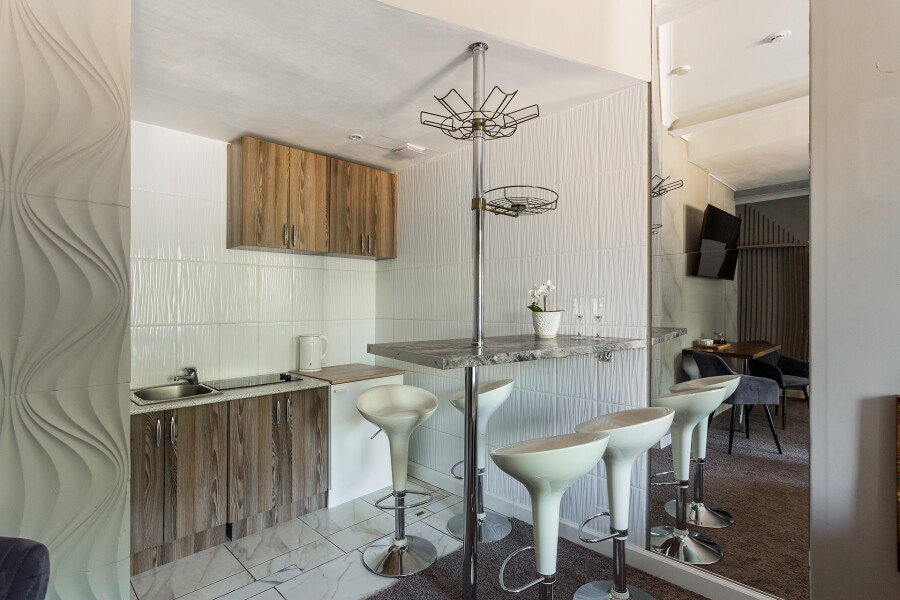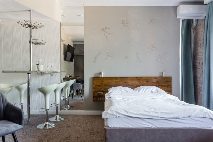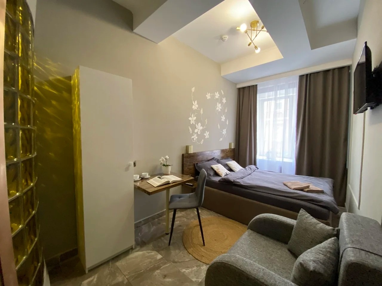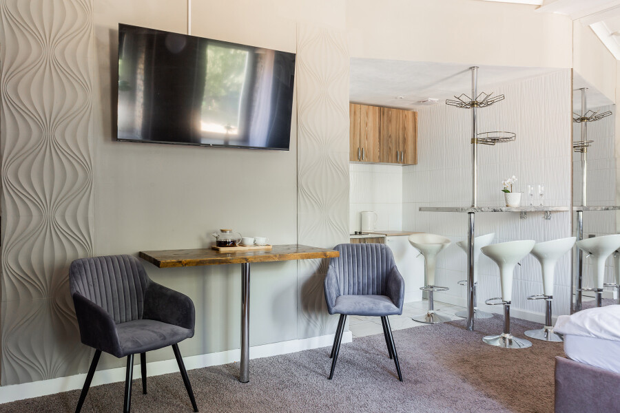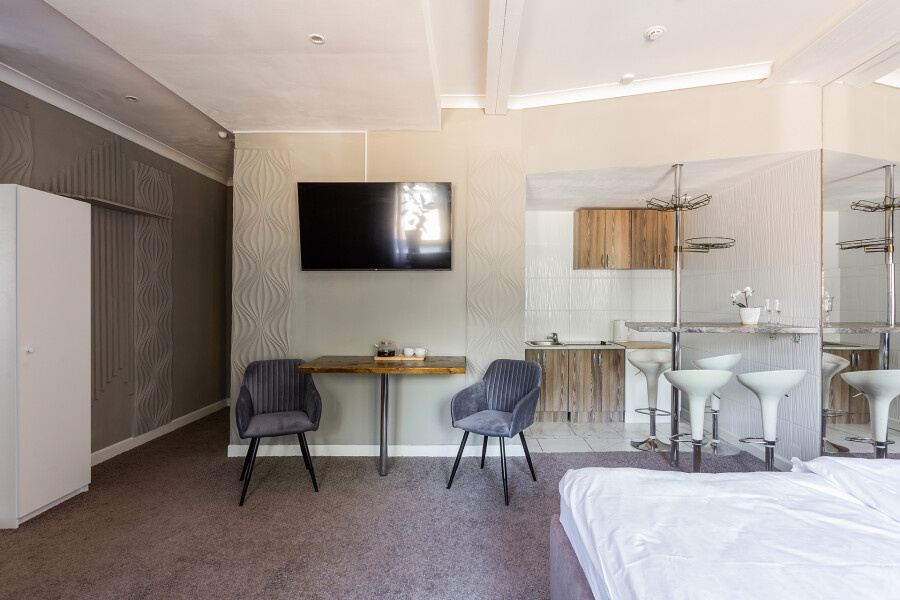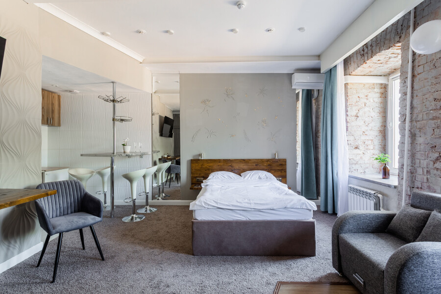 На ресепшене питьевая холодная вода, чай бесплатно. Wi-fi бесплатный на всей территории отеля. Парковка по запросу, гибкая система скидок, зарядка электромобилей, каршеринг, видеонаблюдение и круглосуточная охрана. Есть семейные номера и четырехместная студия с собственной кухней.
