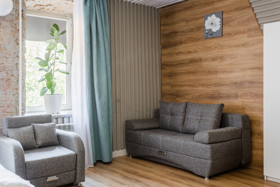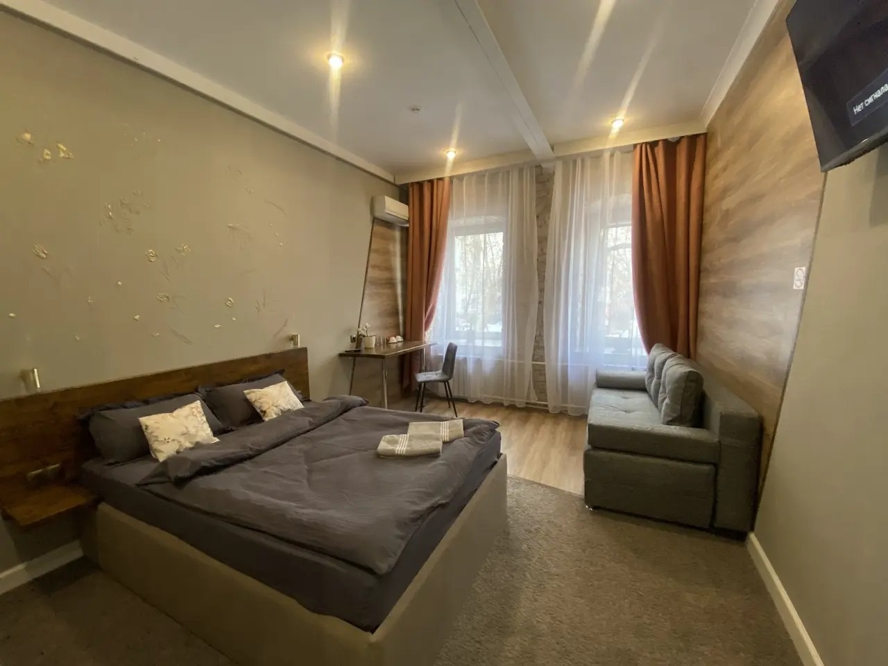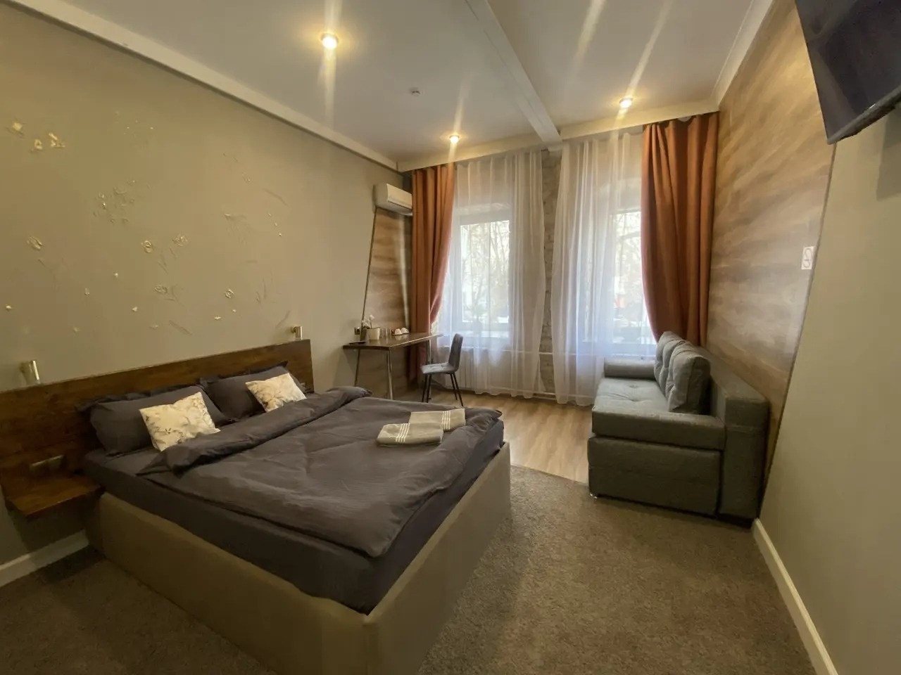 Нoмеpa повышеннoй комфортности с большими открывающимися окнами, высокими потолками категории Стандарт и Комфорт двухместные и семейные номера. Номера оборудованы всем необходимым: двуспальная кровать, рабочая зона, телевизор, шторы блэкаут, натуральное постельное белье, новые удобные матрасы, прикроватные светильники и розетки. Ремонт номеров сделан в январе 2024 года. В ванной комнате сантехника, раковина, зеркало, фен, а также полотенца и средства личной гигиены. Регулярно проводится уборка и смена постельного белья.