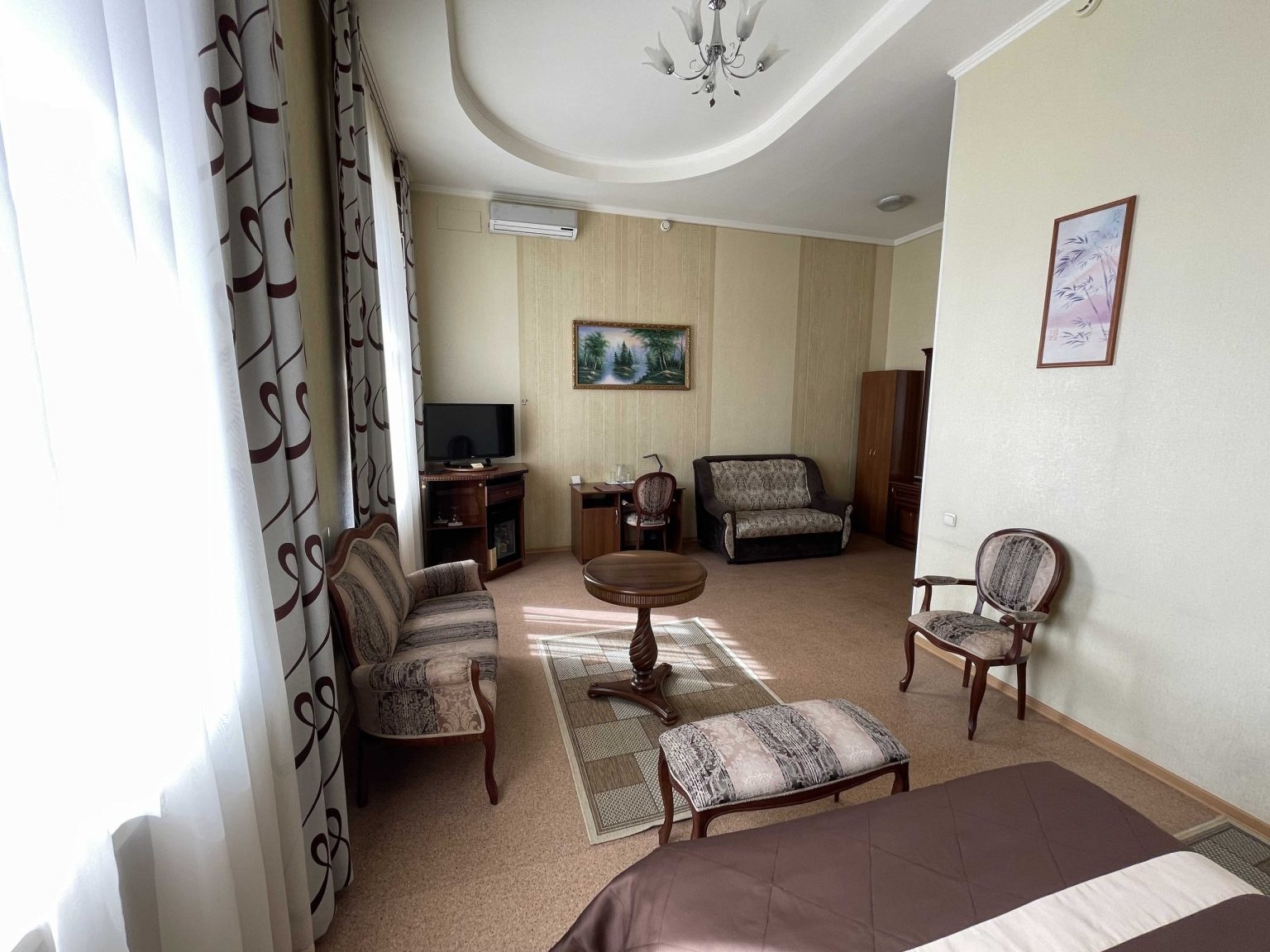 в номер старый, немного ободранные стены, кондиционер дует прямо на кровать - поэтому ночью не включишь, рядом проспект Ленина и при открытом окне было шумно