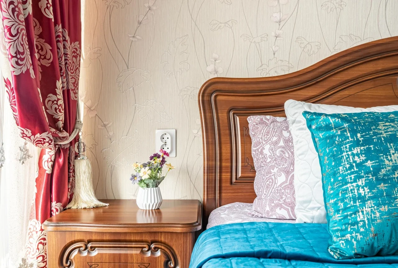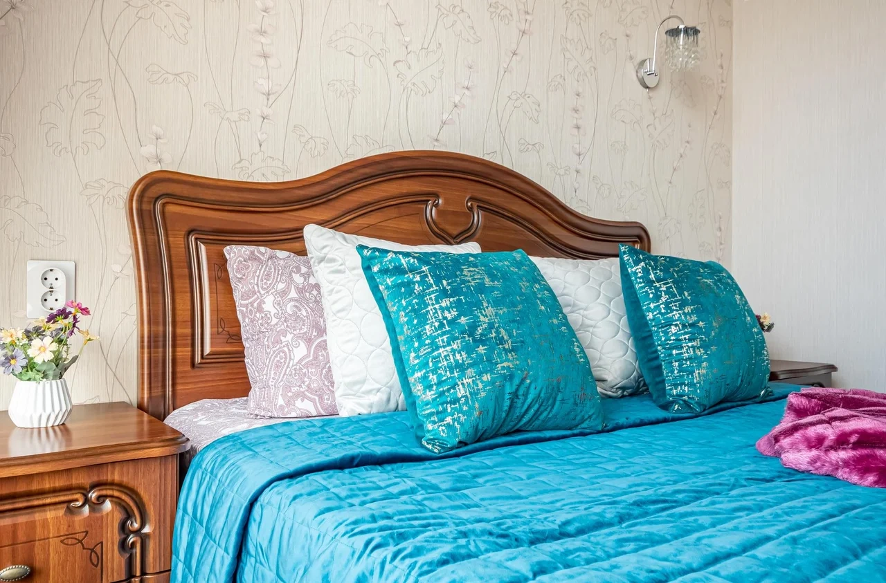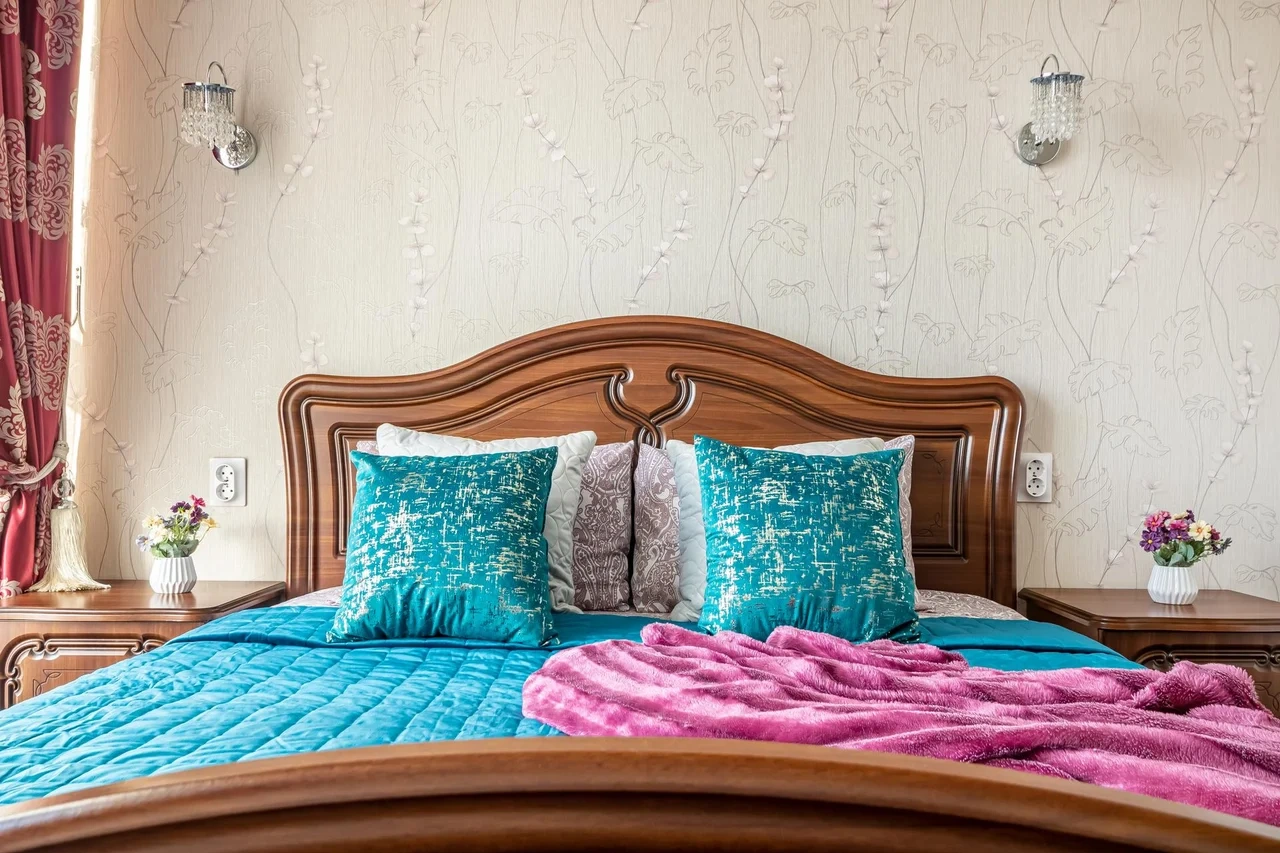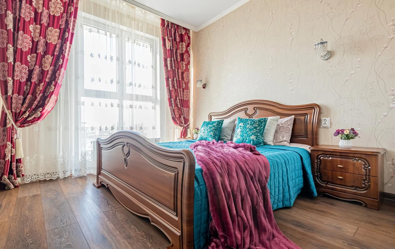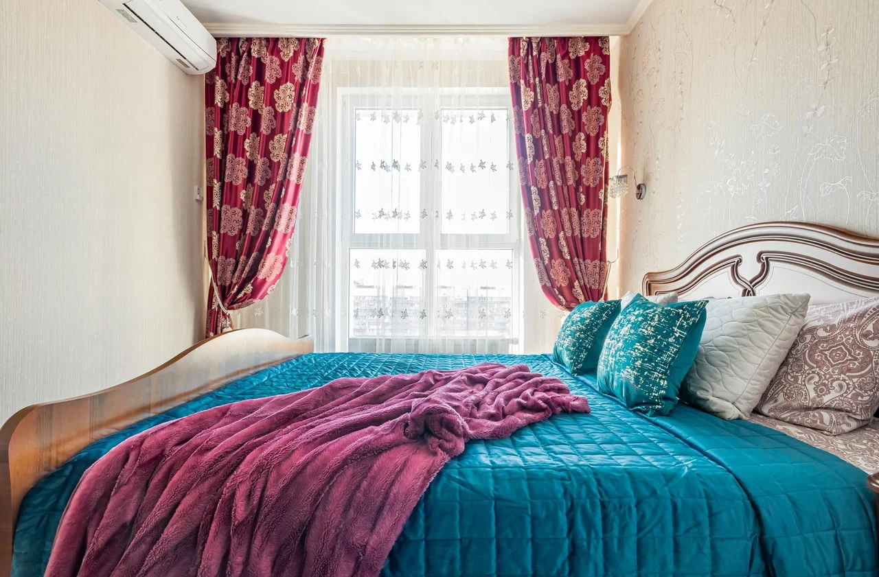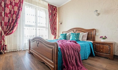 где расположена двуспальная кровать с новым ортопедическим матрацем, 2 прикроватные тумбы ,жк телевизор,