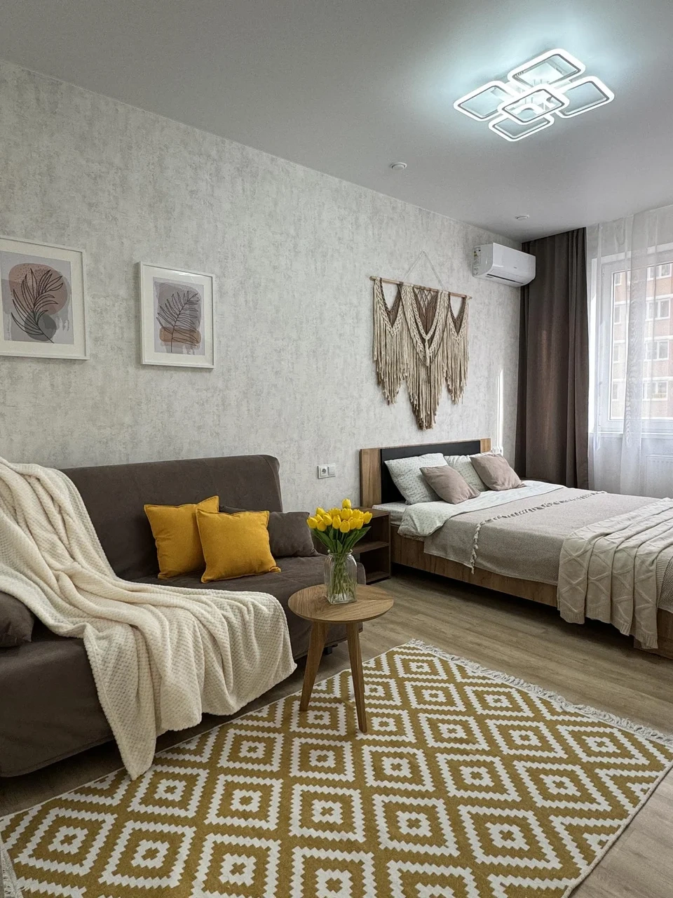 Уютная 1-комнатная квартира в ЖК "Самолеты". Есть все необходимое для комфортного проживания. - двуспальная кровать, двуспальный диван - кондиционер в комнате и на кухне - холодильник - духовой шкаф - варочная панель - микроволновая печь - фен - утюг - гладильная доска - сушилка для белья - wi- fi - тв на кухне - постельное белье - полотенца - бойлер Рядом магазины "Пятерочка", "Лента", "Магнит", аптека, пиццерия.