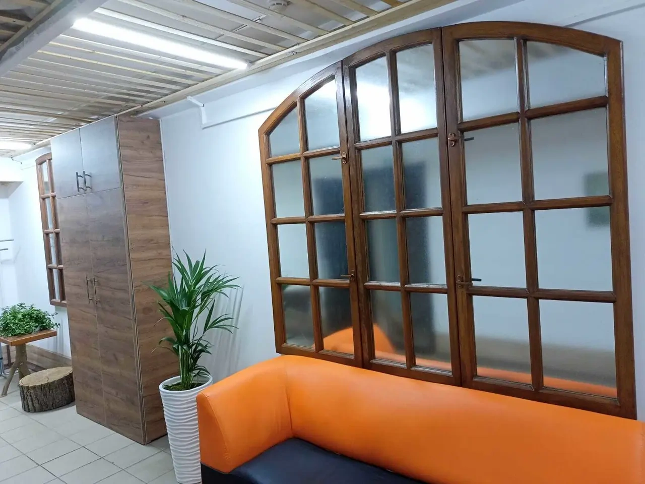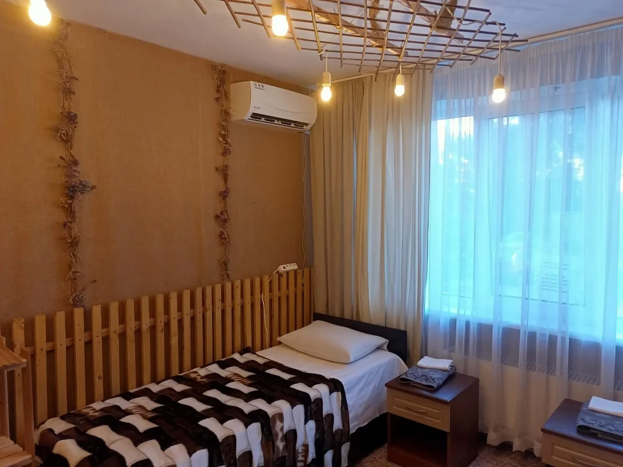 Двухместный номер с одной двуспальной кроватью (160х200), с отдельным помещением для работы. . Кондиционер. С/у и индивидуальные душевые кабины находятся на этаже ( не в номере !!! ) Холодильник общий, микроволновая печь, эл. чайник, фен, утюг, стиральная машина ... WiFi . Парковка гостевая.