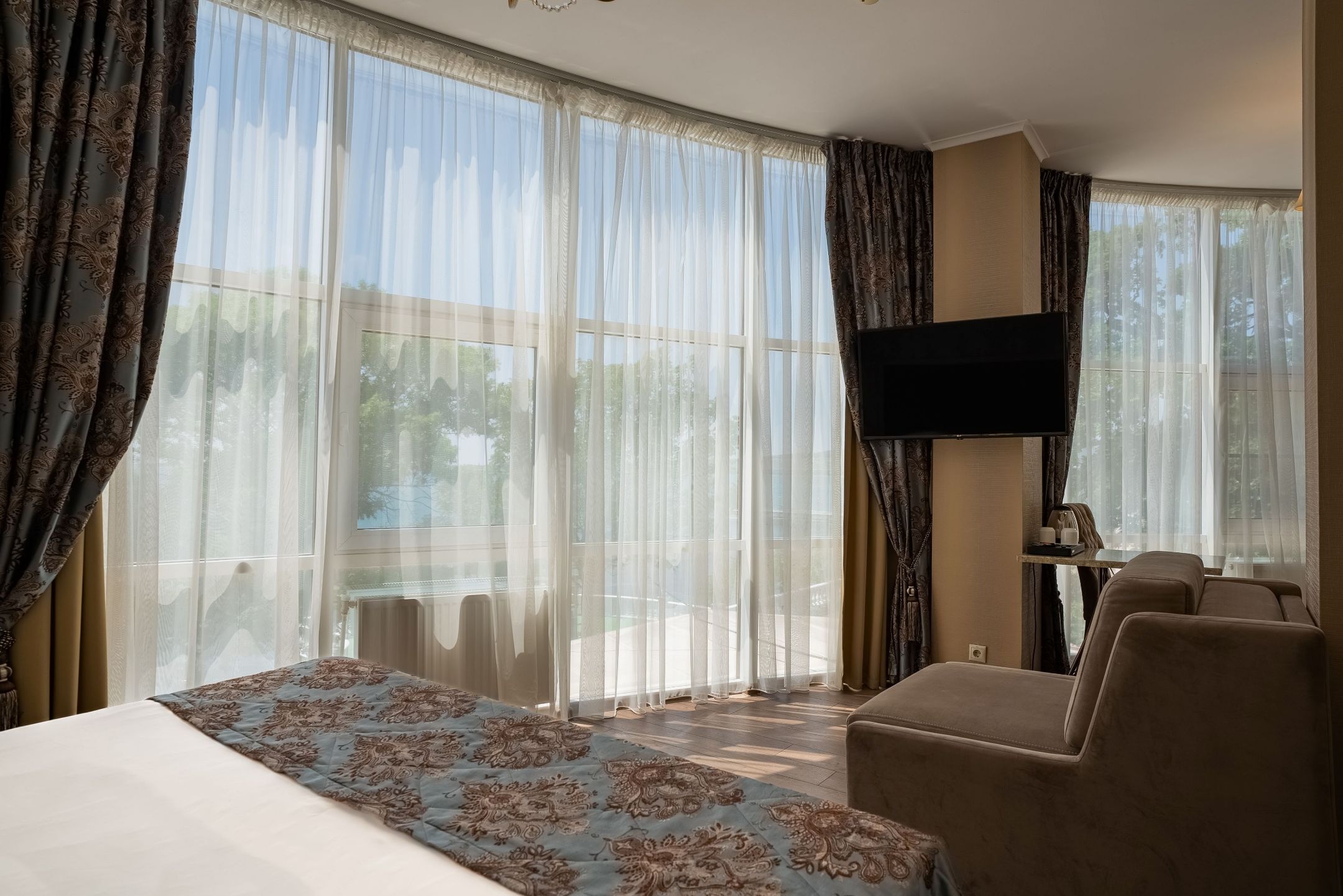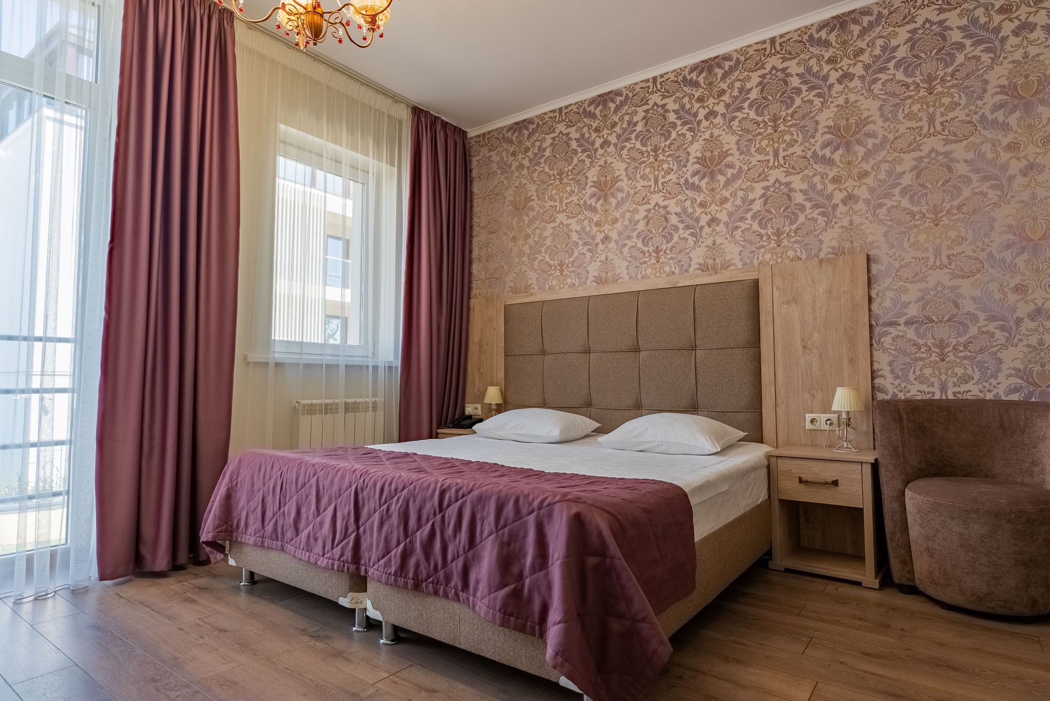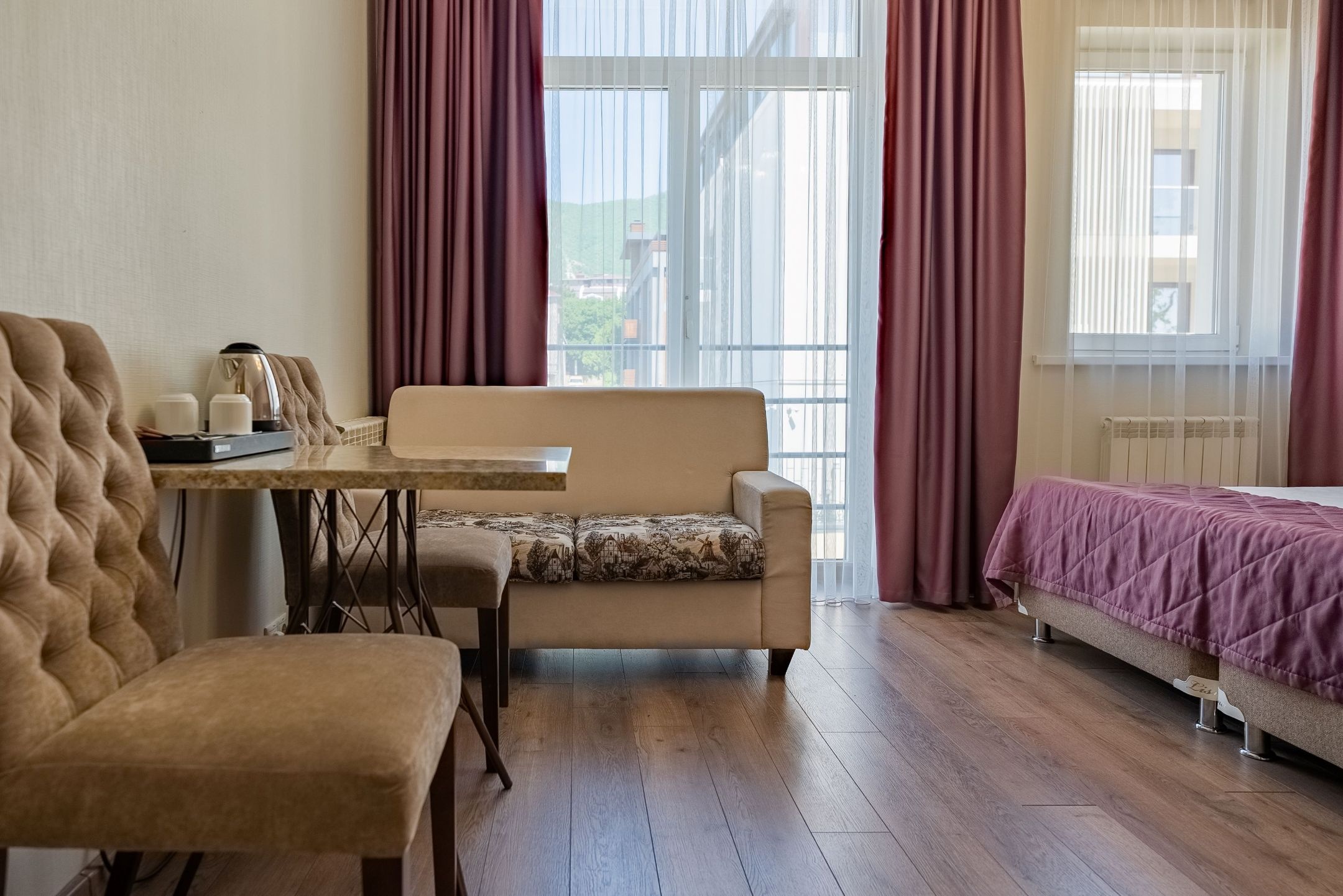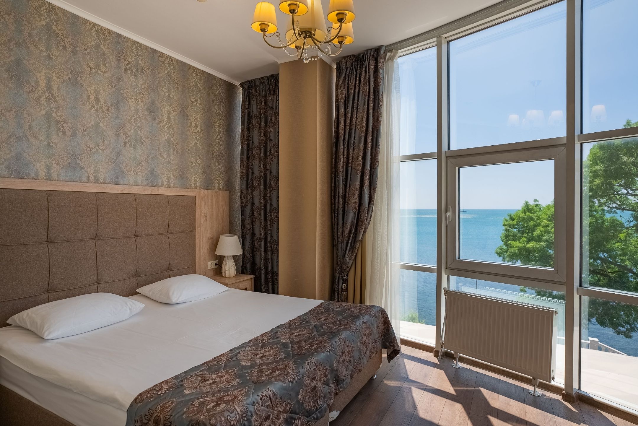 Для размещения гостей подготовлены двухместные номера категории «Джуниор сюит» в модернистском стиле, откуда открывается вид на горы и море. Для комфортного проживания они оснащены всей необходимой мебелью и бытовой техникой. Собственные ванные комнаты оборудованы современной сантехникой.