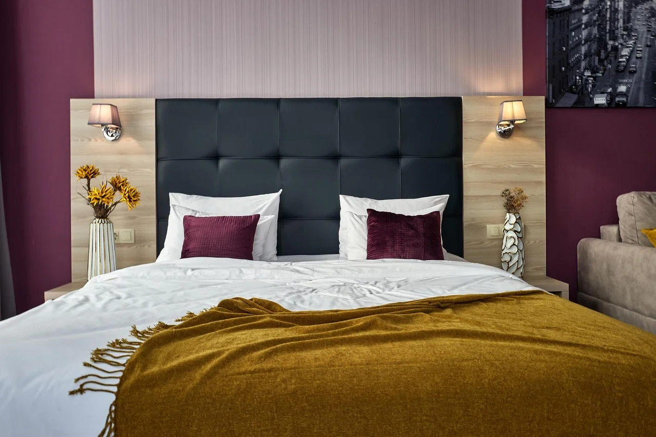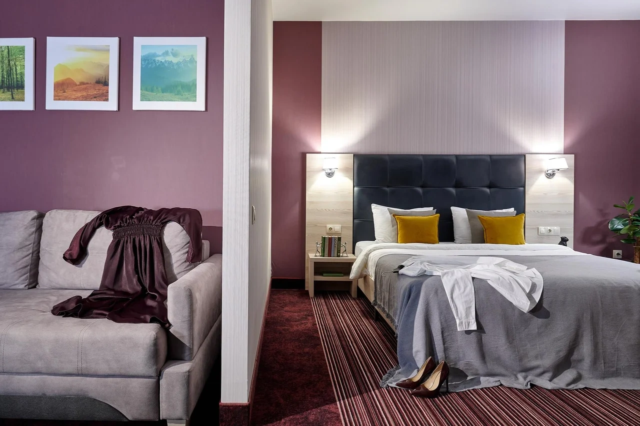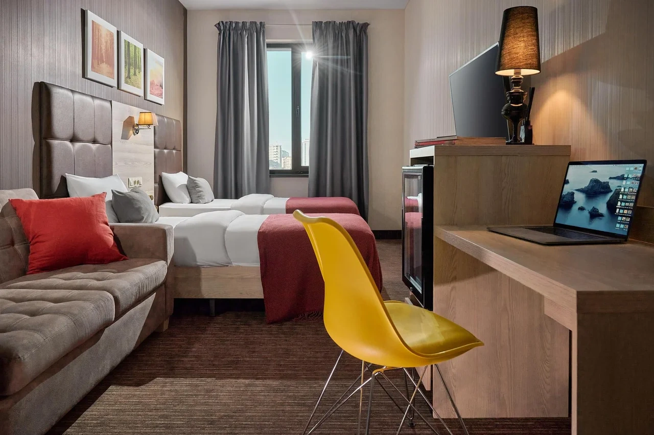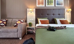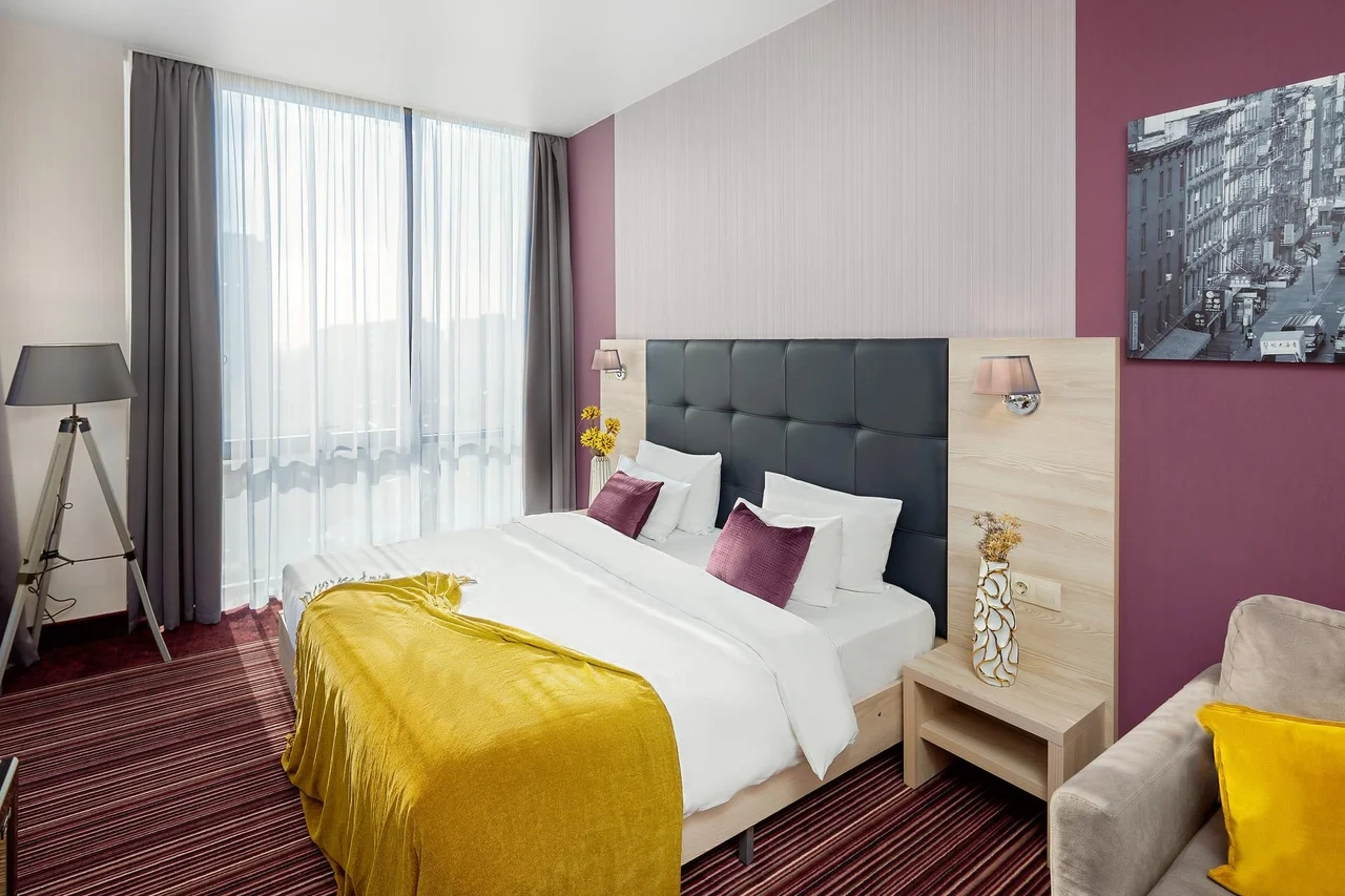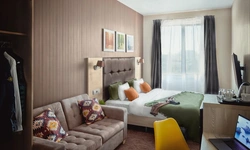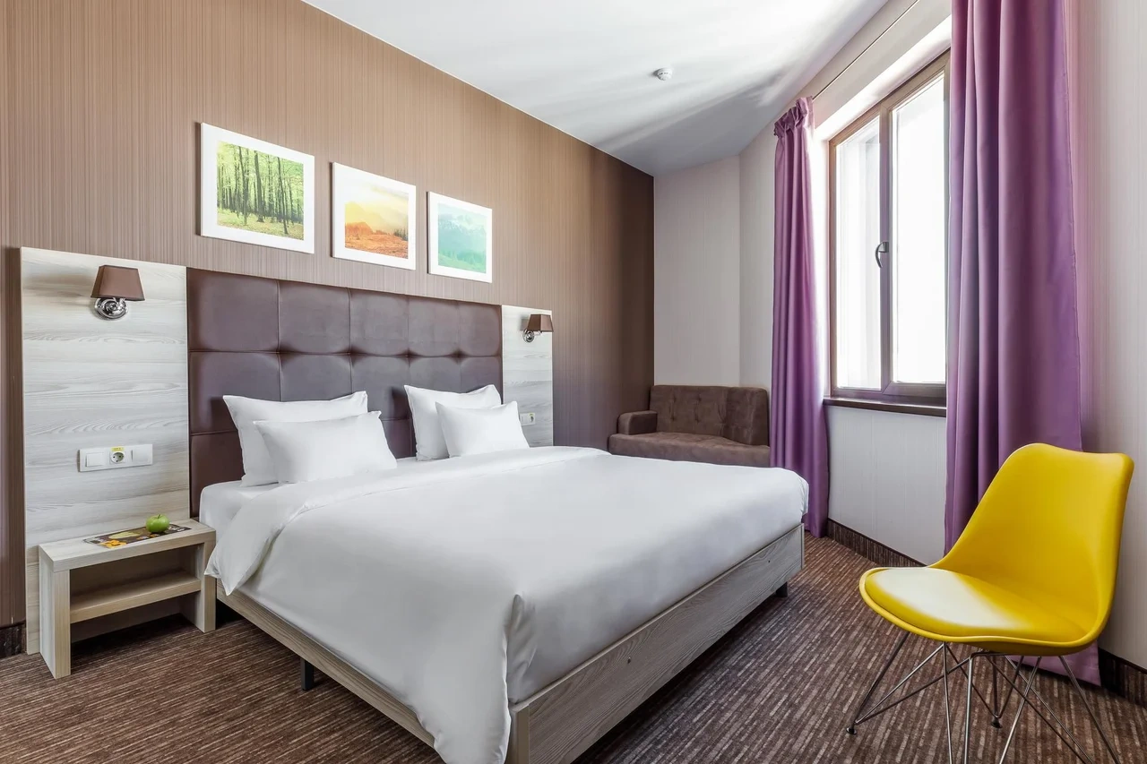 Кровать отличная, глубокая, мягкая, есть столик где можно поработать с ноутом, диван. Душевая отличная, номера все новые, очень приятное место. Завтраки за отдельную плату. Плюс внизу есть неплохой ресторан с разнообразным меню. Номер новый, в европейском стиле. Чистота - топ, всё очень хорошо. Заселение очень удобное и быстрое, персонал дружелюбный. Очень приятное обслуживание.
