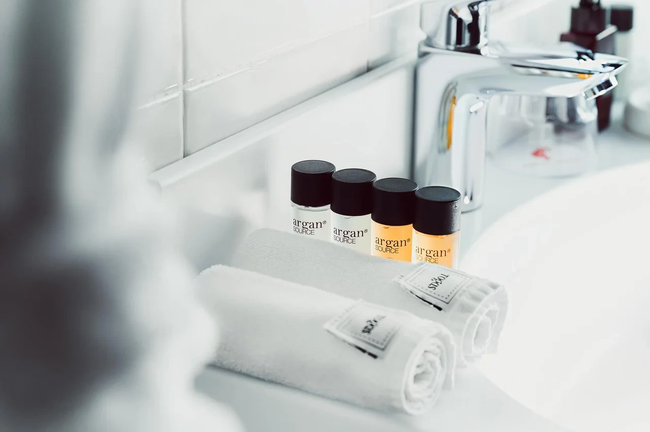 Современные номера, оформленные в стильных теплых тонах, оснащены одной большой кроватью (180*200), удобными матрасами бренда Acscona, высококачественным текстилем бренда Togas, комфорт рабочей зоной, 40- дюймовым телевизором, индивидуальной системой климат-контроля, мини-баром, набором для приготовления чая и кофе, телефоном, Wi-Fi, сейфом. Ванная комната оснащена душем, зеркалом с подсветкой, банными принадлежностями, а представленная итальянская косметика бренда Argan на основе натурального арганового масла, поможет расслабиться после продуктивного дня.