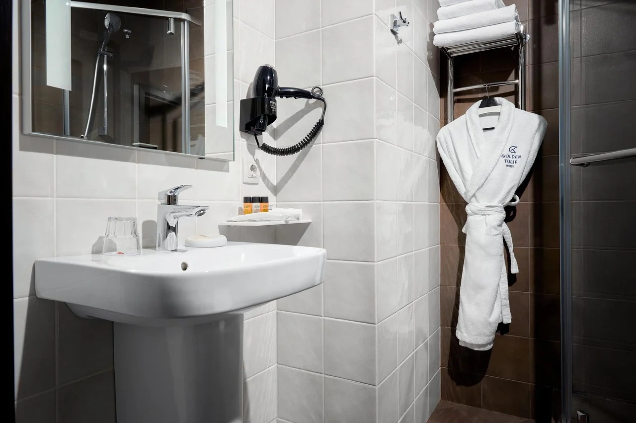 Из заявленных 4 звезд по факту вы получаете 2 и то очень низкого уровня. В номере очень темно. Света практически нет ни в комнате, ни в ванной. Окно открыть нельзя так как шум дороги и автомойки за окном сведет вас с ума. В номере из-за этого душно. Тюли на окнах нет, окна очень грязные. Шумоизоляция на нуле, слышно абсолютно все и всех. Постельное белье в катышках. Попросили поменять у администратора, она быстро все организовала. А вот горничная пришла к нам с таким лицом не довольным лицом и фразой «Ну показывайте, что там у вас?!» Матрас не удобный, утром чувствуешь себя как будто тебя побили. Крючки на вешалках сломаны. Короче впечатление об отеле ужасное. Прочитайте отзывы сто раз прежде чем выбирать это место!!!!!
