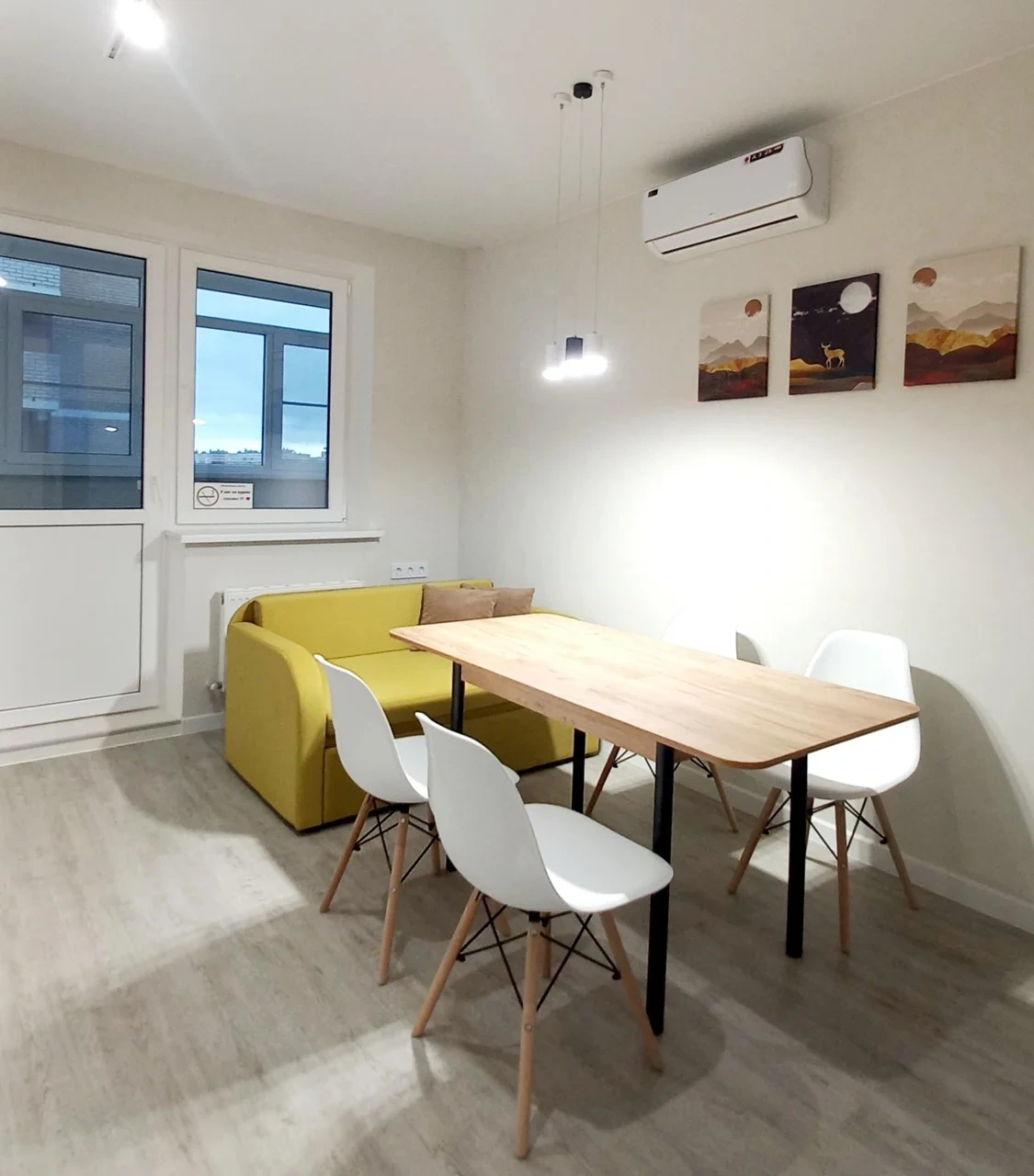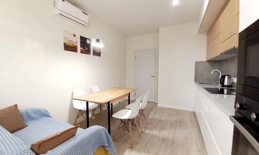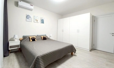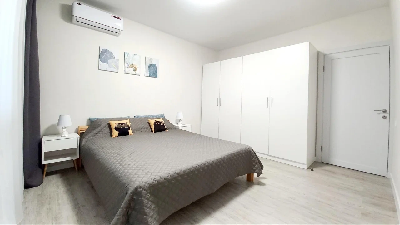 В первой комнате кровать с комфортным ортопедическим матрасом для двух человек 160 на 200. Во второй комнате раскладной диван 160 на 200. В кухне раскладной диван 110 на 185 и обеденная зона.