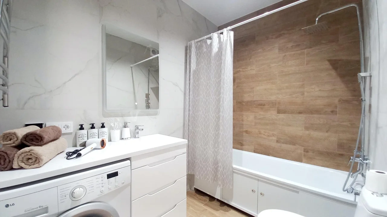 Высокоскоростной wi-fi, smart tv с Алисой, бойлер для бесперебойной подачи горячей воды, тропический душ, два санузла с гигиеническим душем, три сплит системы, стиральная машина, сушилка для белья, гладильная доска, утюг, фен, холодильник, посудомоечная машина, микроволновка, чайник, печь для приготовления пищи, духовой шкаф и весь необходимый инвентарь (кастрюли, сковорода, столовые приборы, посуда и т.д. ). Гигиенические принадлежности: шампунь, бальзам, гель для душа, зубной набор (одноразовый) и тапочки (одноразовые) входят в стоимость проживания.