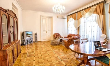 Большая гостиная с кожаным диваном, креслами, удобными креслами-грушами, большой телевизор, DVD, USB, игровая приставка Sony PlayStation. Для гостей, которые едут в Краснодар решать деловые вопросы, мы с радостью предоставим компьютер и принтер, интернет Wi-Fi.