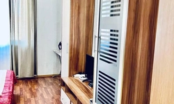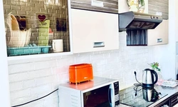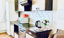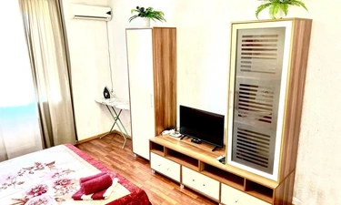 Вся бытовая техника, посуда, стиральная машина, утюг, фен, гладильная доска, холодильник , сушилка, кондиционер, телевизор, wi-fi, спутниковое телевидение.