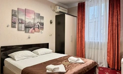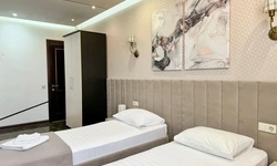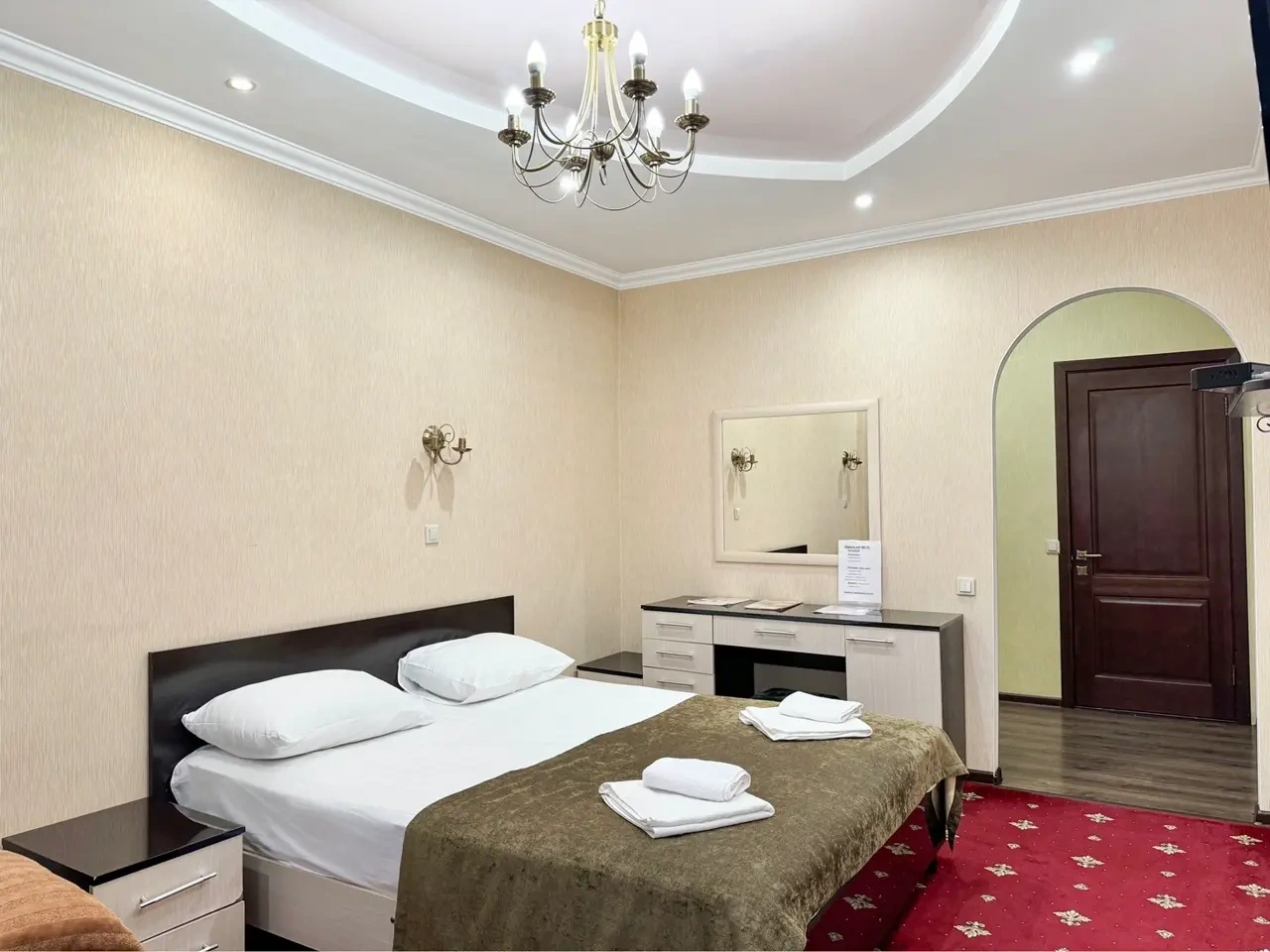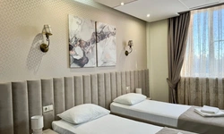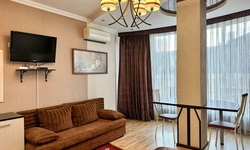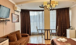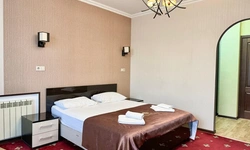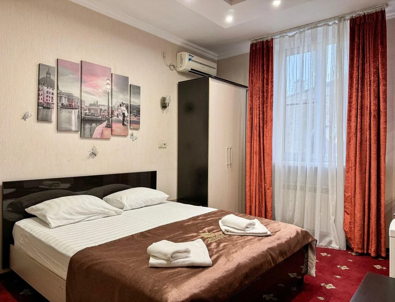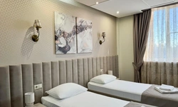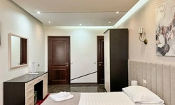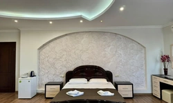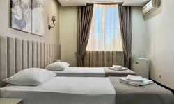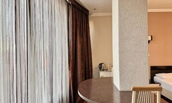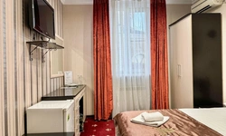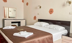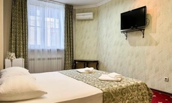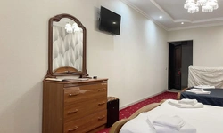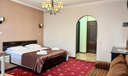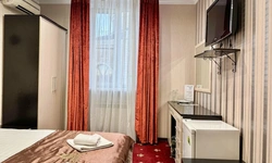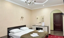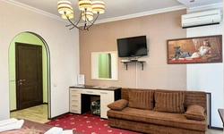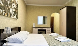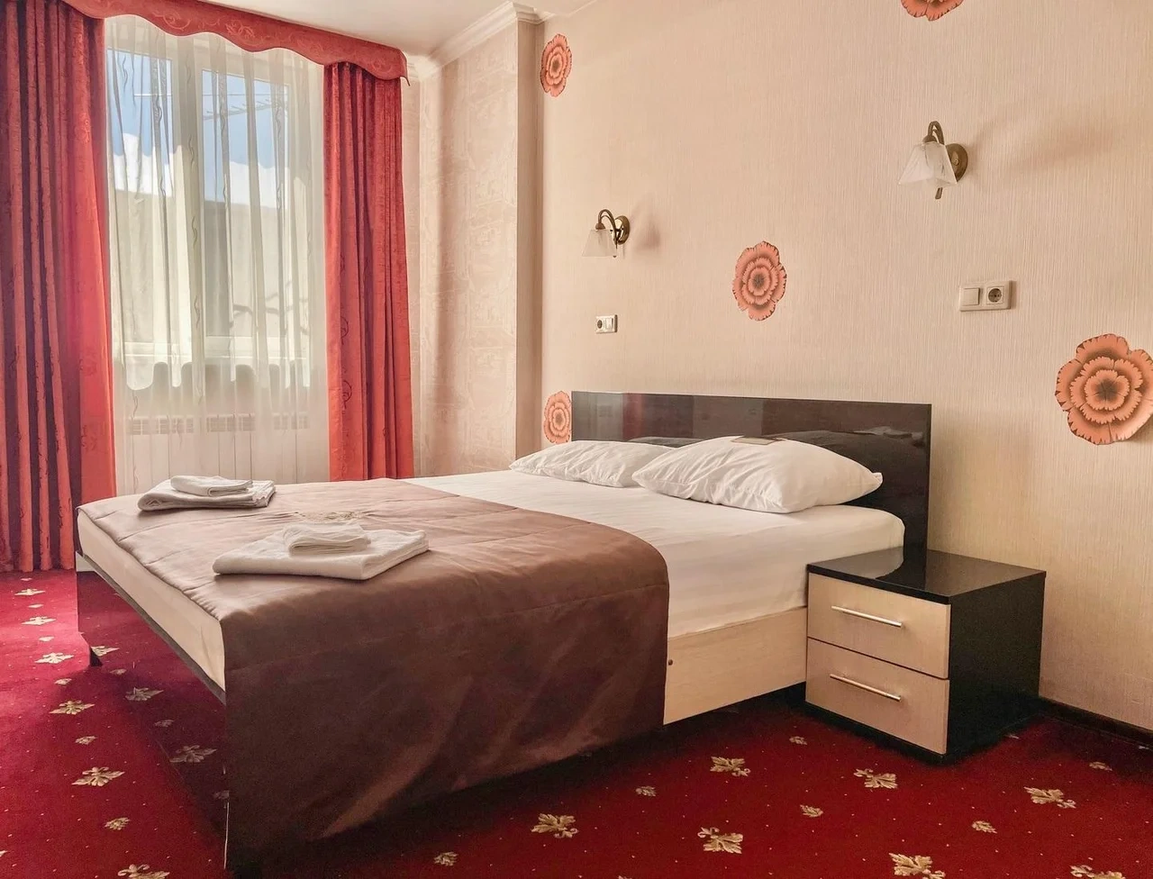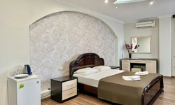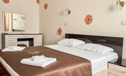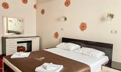 В номере воняет куревом! Вечером внизу (хозяева видимо) жарят шашлык и запах этого шашлыка вместе с дымом в номере. Мебель вся уставшая. Кровать для супружеского долга вообще не подходит, так как если на ней что то делать, то будет слышать все три этажа отеля. Матрац убитый. В санузле стоит джакузи и объявление что она не работает, но это полбеды. Воды в номере нет вообще, она просто идёт тонкой струечкой. Но это ещё тоже ладно, подмыться ещё хоть как то можно. Но как стоять в этой ванной вообще не понятно, так как у джакузи пол не ровный, нужно стоять, точнее сидеть в уголке ванной возле крана, так как вода не идёт совсем. Короче это не гостиница, а недоразумение. Слышимость в гостинице тоже нормальная. Заехали ночью люди всю ночь ругались, орали, но им даже никто не сделал замечание потому что вся администрация спит. Остановиться можно только если едешь на юг на одну ночь и то если не сильно вспотел, так как мыться и спать тут невозможно!!!