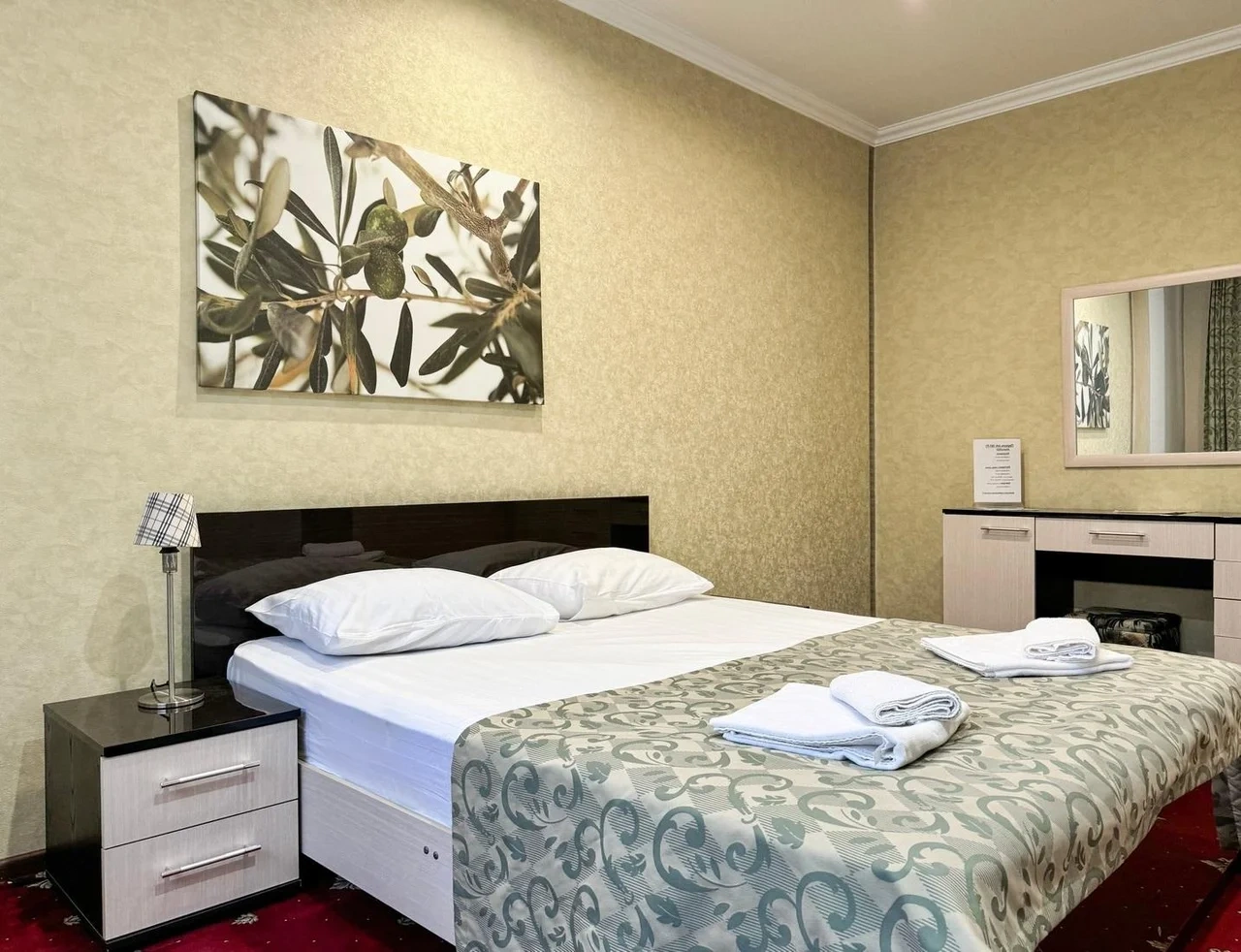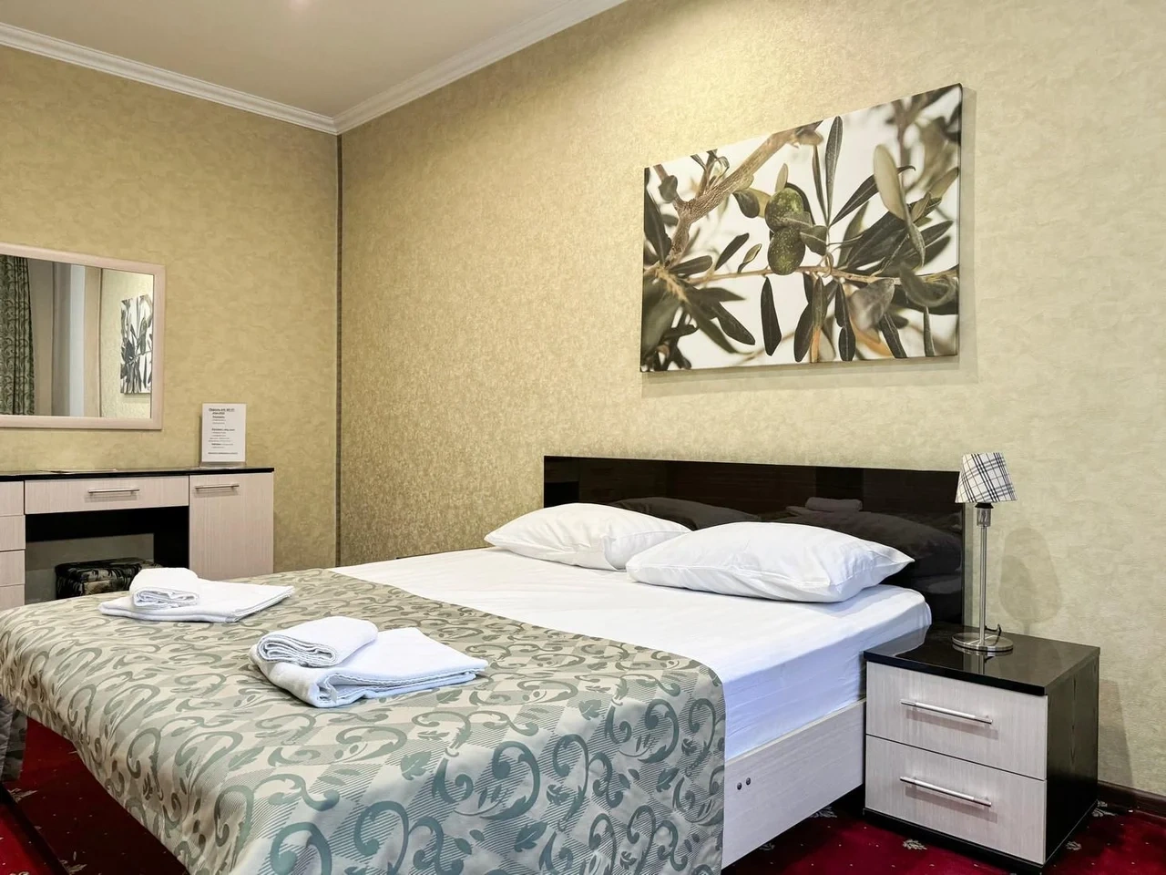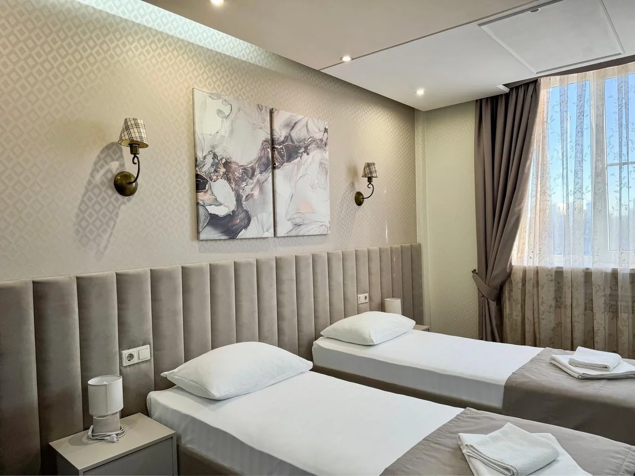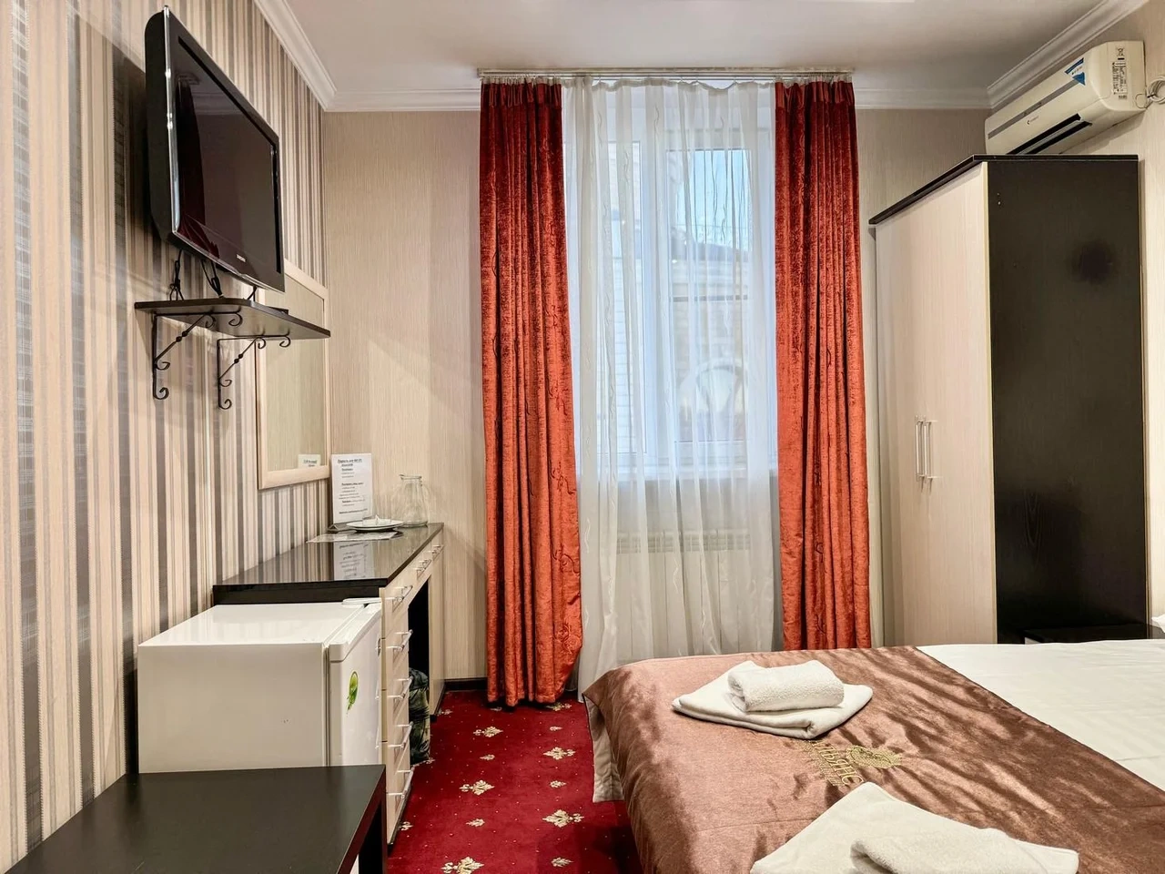 Номер комфортный. Постель чистая, в ванной всё есть, даже тапочки одноразовые. Ванная чистая и приятная. Персонал отзывчивый и приветливый. Спасибо!
