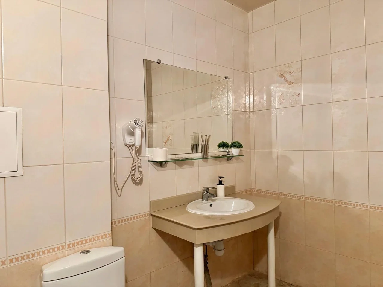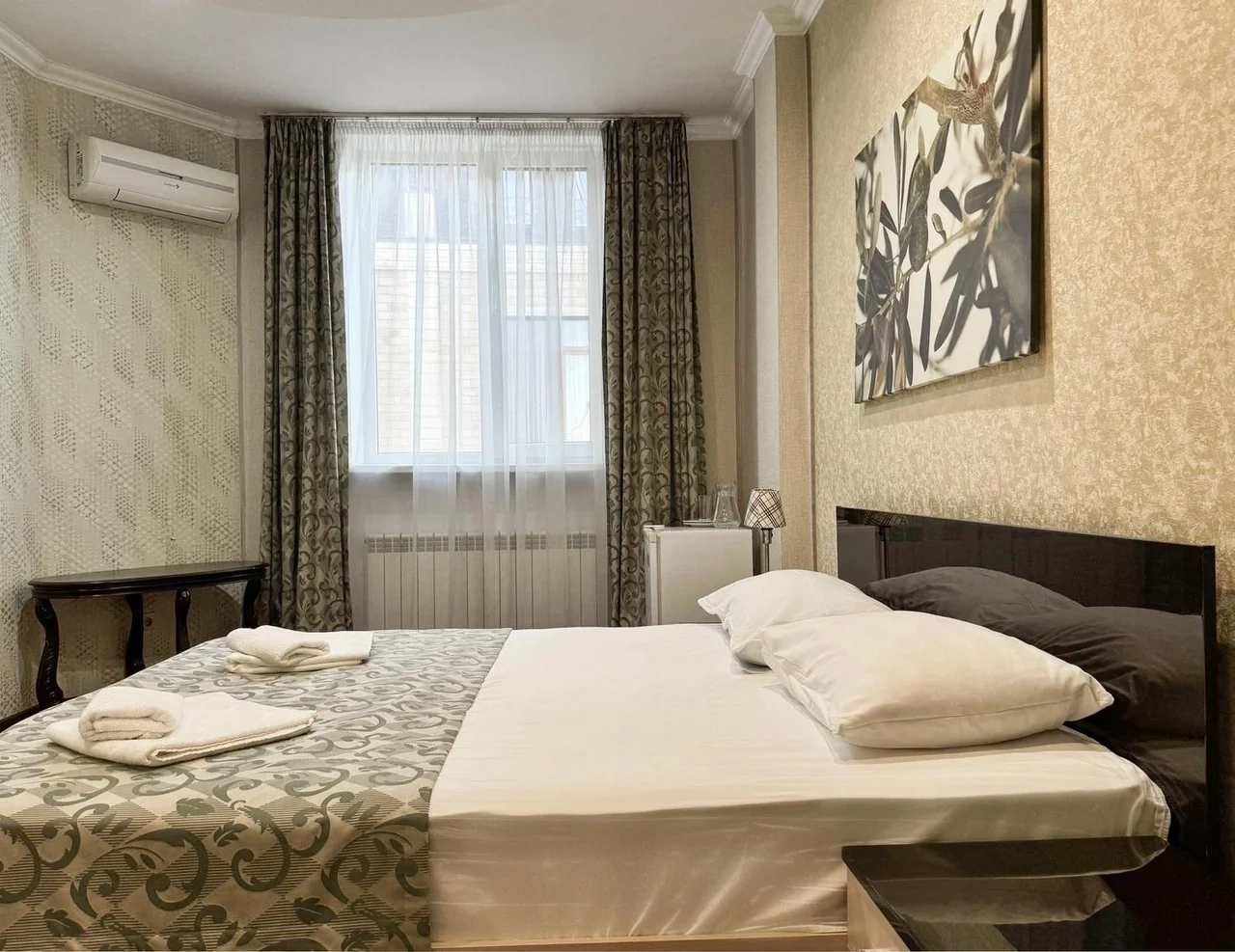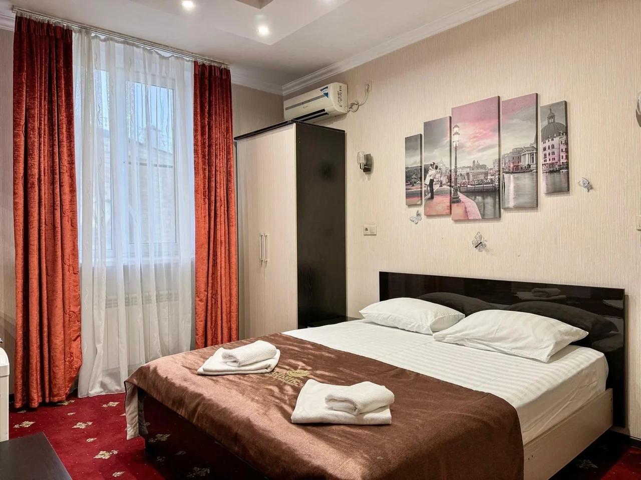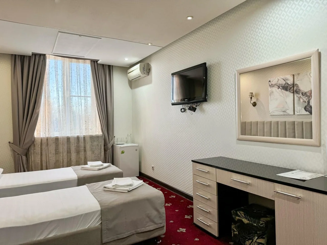 Номер комфортный. Постель чистая, в ванной всё есть, даже тапочки одноразовые. Ванная чистая и приятная. Персонал отзывчивый и приветливый. Спасибо!