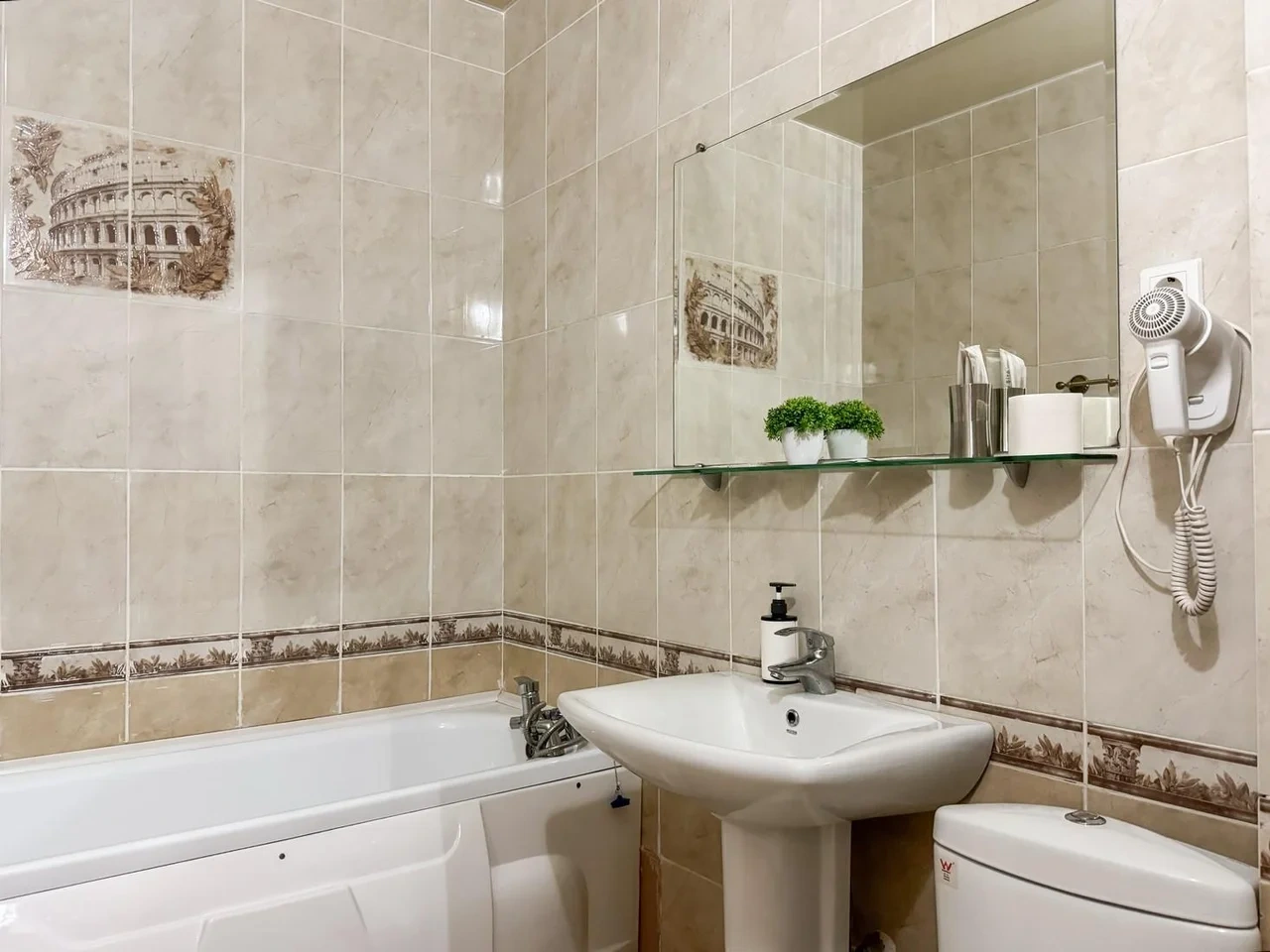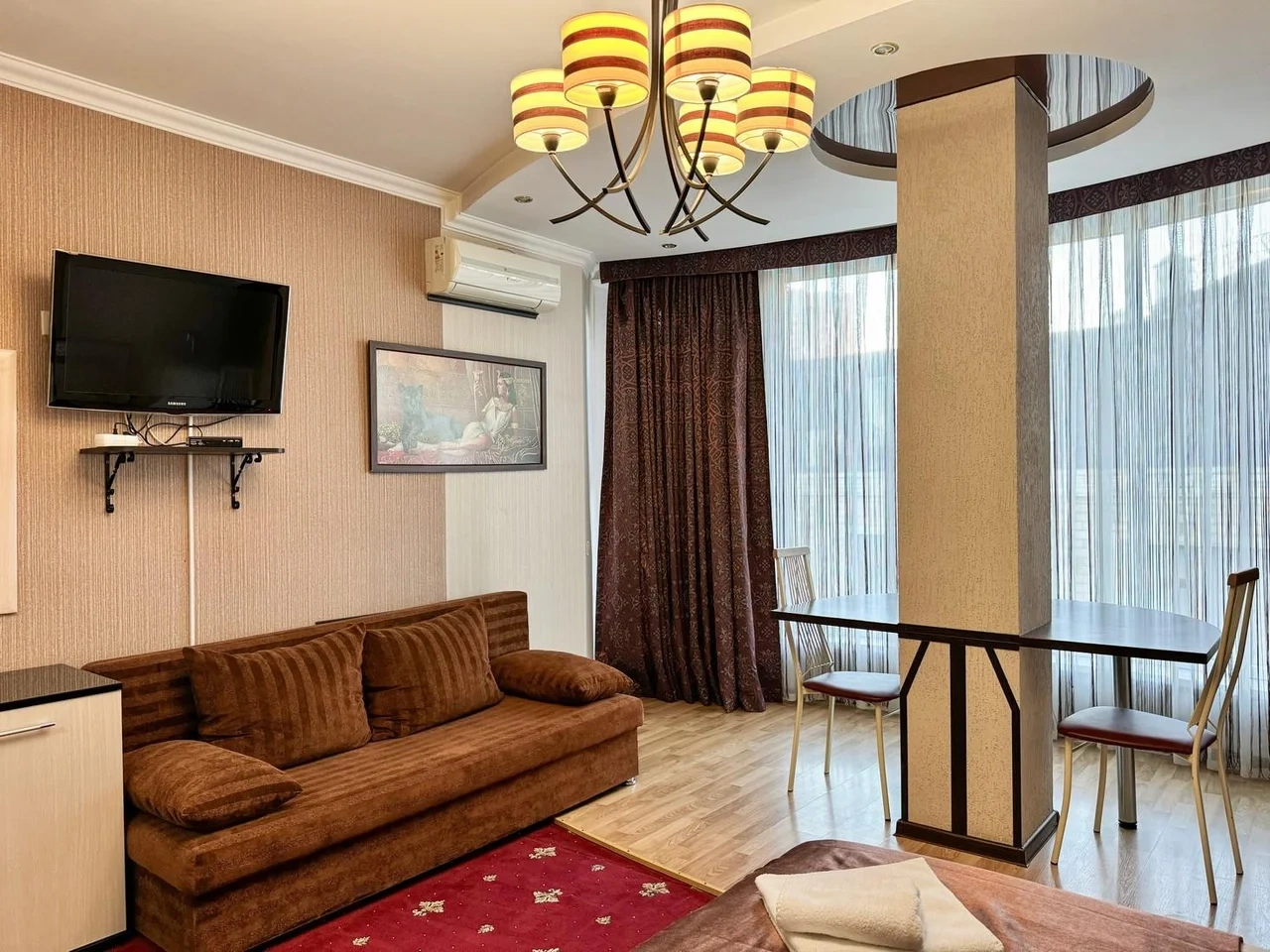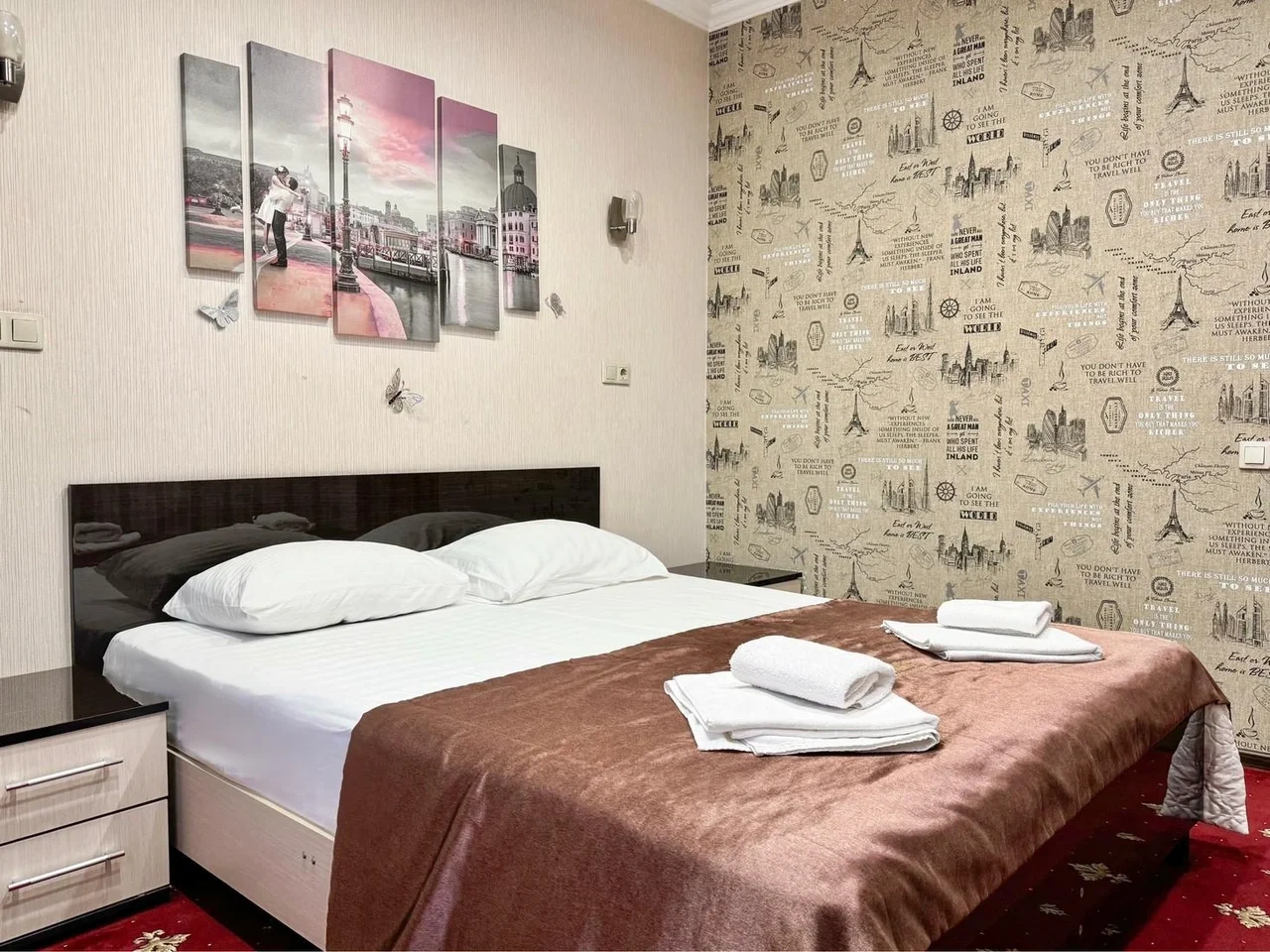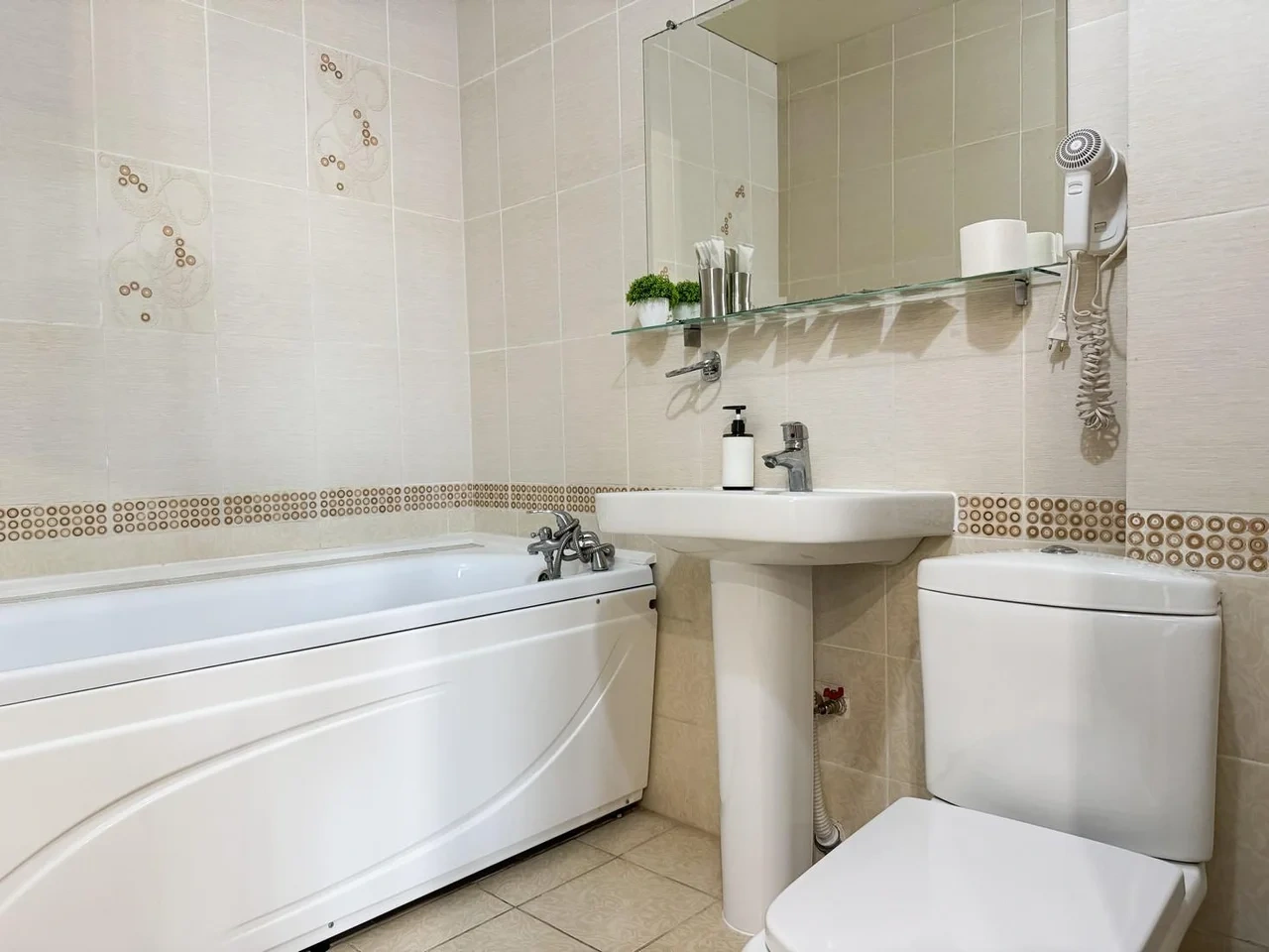 Номер комфортный. Постель чистая, в ванной всё есть, даже тапочки одноразовые. Ванная чистая и приятная. Персонал отзывчивый и приветливый. Спасибо!