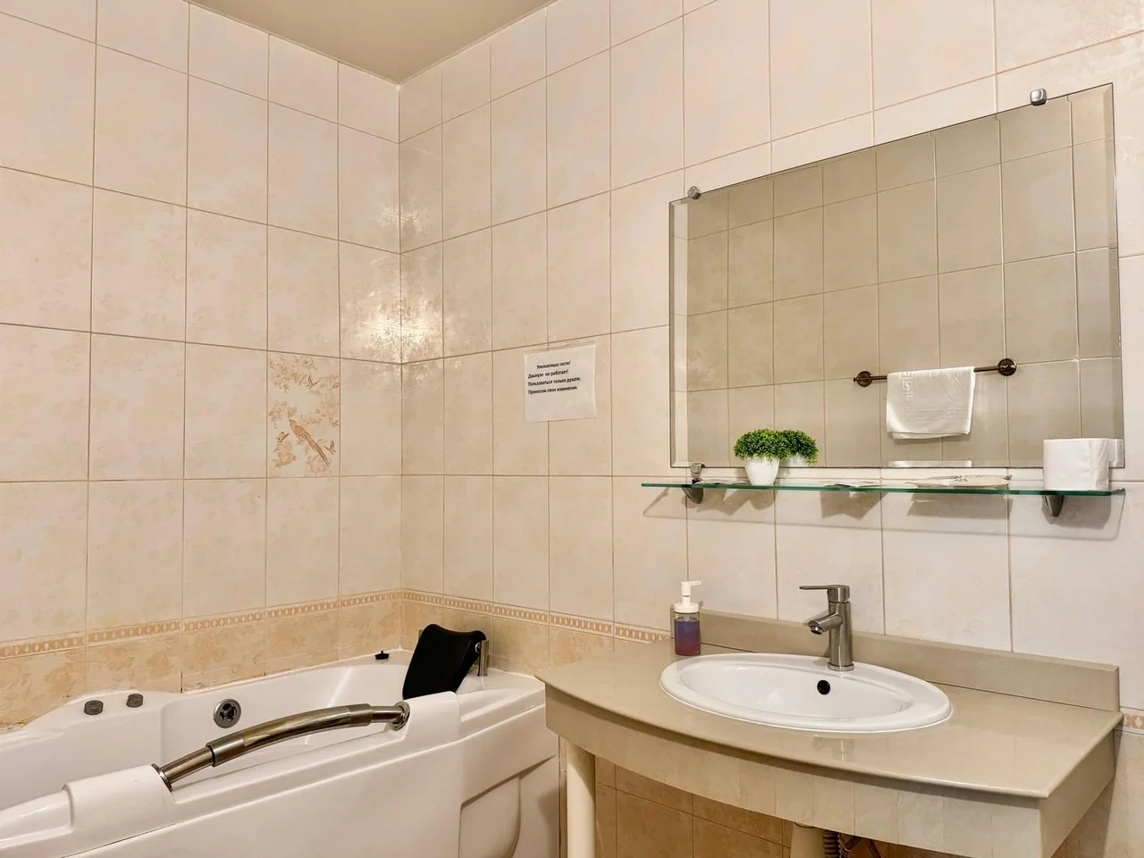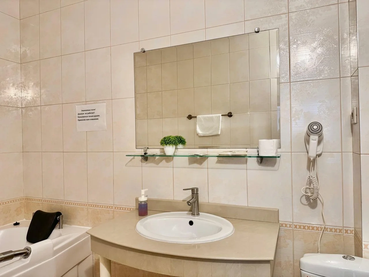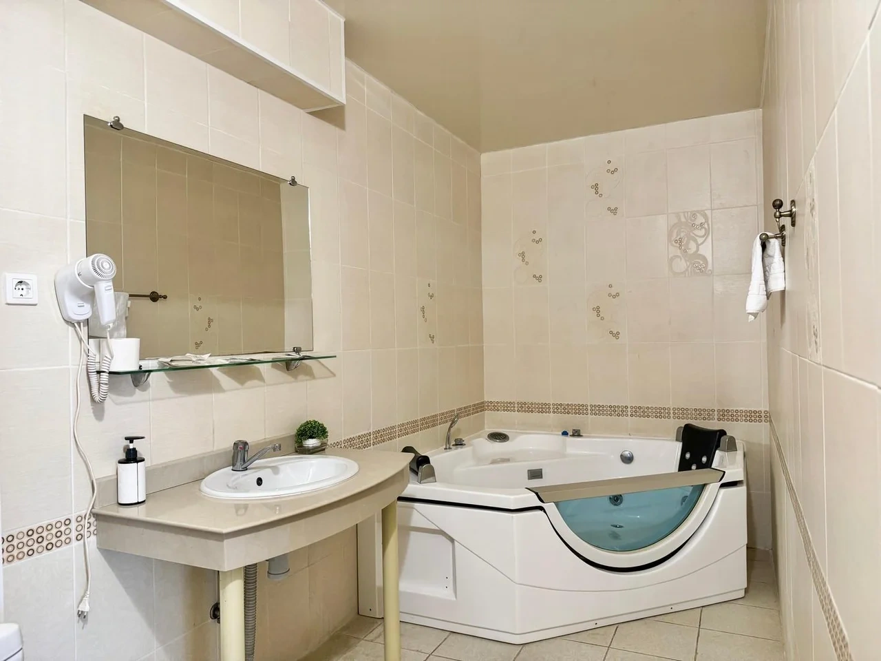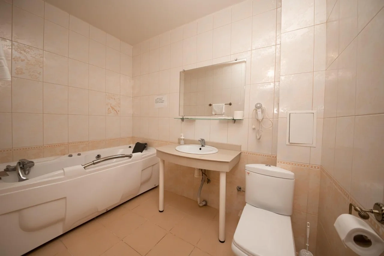 Все очень старое. Номер полулюкс. В ванной убитая не работающая джакузи. Я человек с инвалидностью, если туда залезла и пока принимала душ, риск упасть был велик. В целом все очень старенькое. Бронировала здесь, оставила комментарий, что бы подготовили и застелили постель ребенку, так как приехали поздно. Но на ресепшене не видели оплату номера, пришлось искать на почте подтверждение. Кровать никто конечно не застелил ребенку, и даже доп белья не приготовили. Пришлось звонить на ресепшен, просить белье и самим стелить. Второй раз сюда не приедем точно. Цена до таких условий завышена