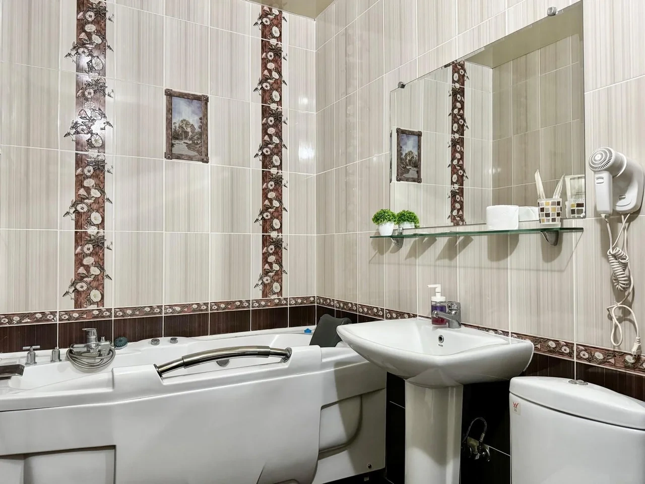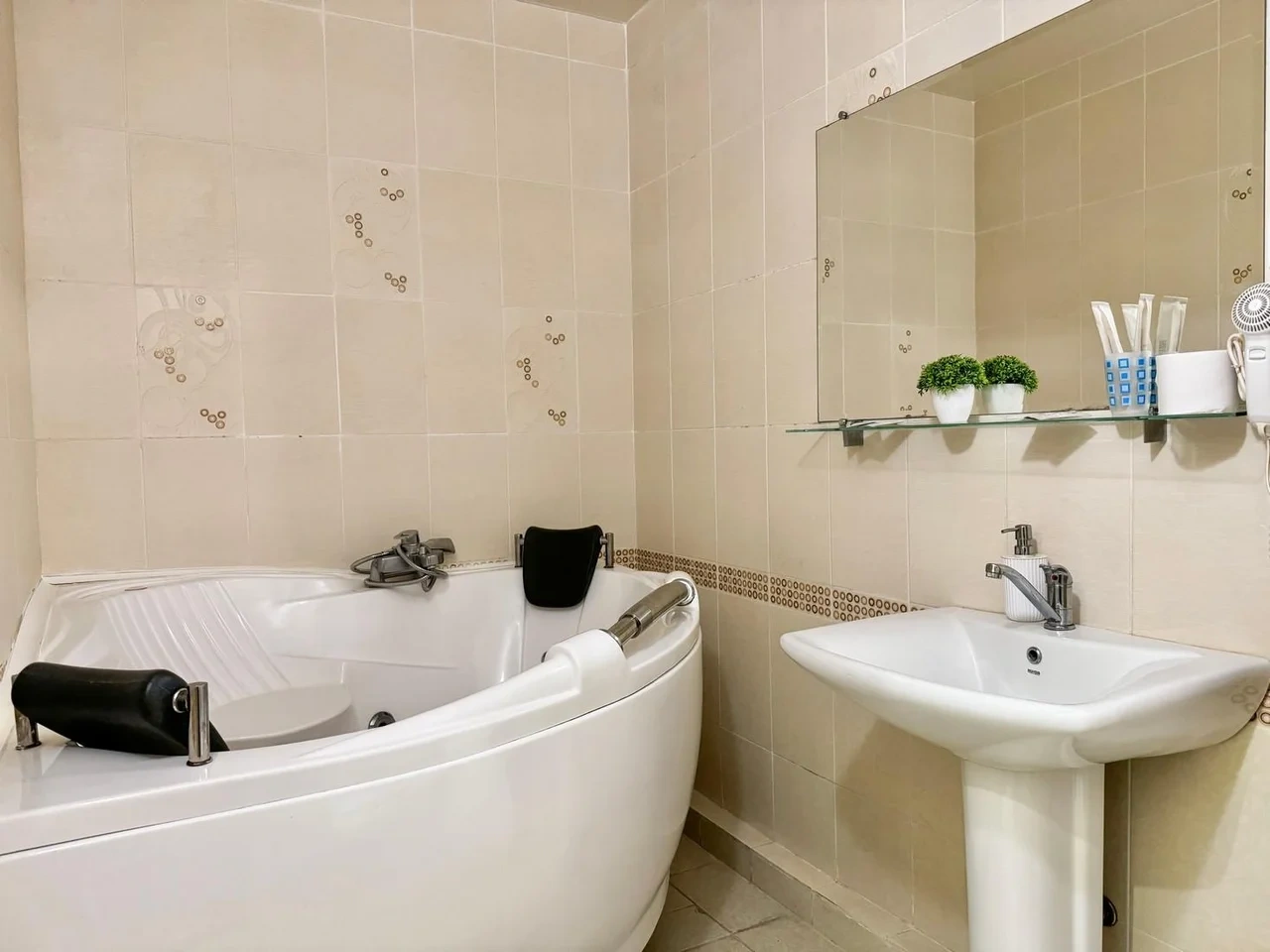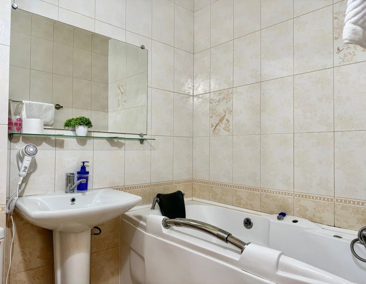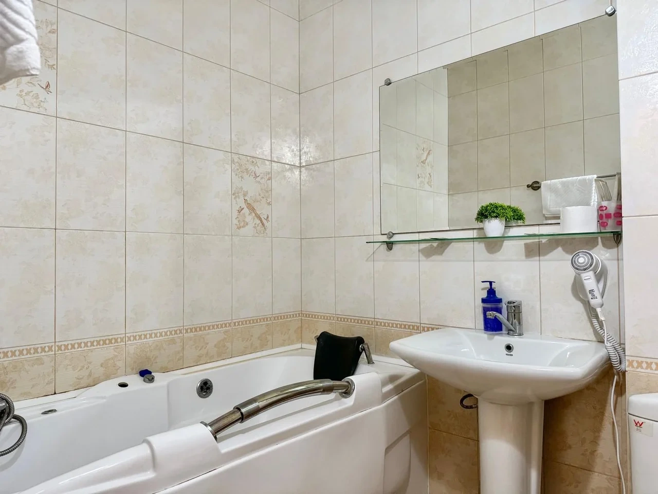 Все очень старое. Номер полулюкс. В ванной убитая не работающая джакузи. Я человек с инвалидностью, если туда залезла и пока принимала душ, риск упасть был велик. В целом все очень старенькое. Бронировала здесь, оставила комментарий, что бы подготовили и застелили постель ребенку, так как приехали поздно. Но на ресепшене не видели оплату номера, пришлось искать на почте подтверждение. Кровать никто конечно не застелил ребенку, и даже доп белья не приготовили. Пришлось звонить на ресепшен, просить белье и самим стелить. Второй раз сюда не приедем точно. Цена до таких условий завышена