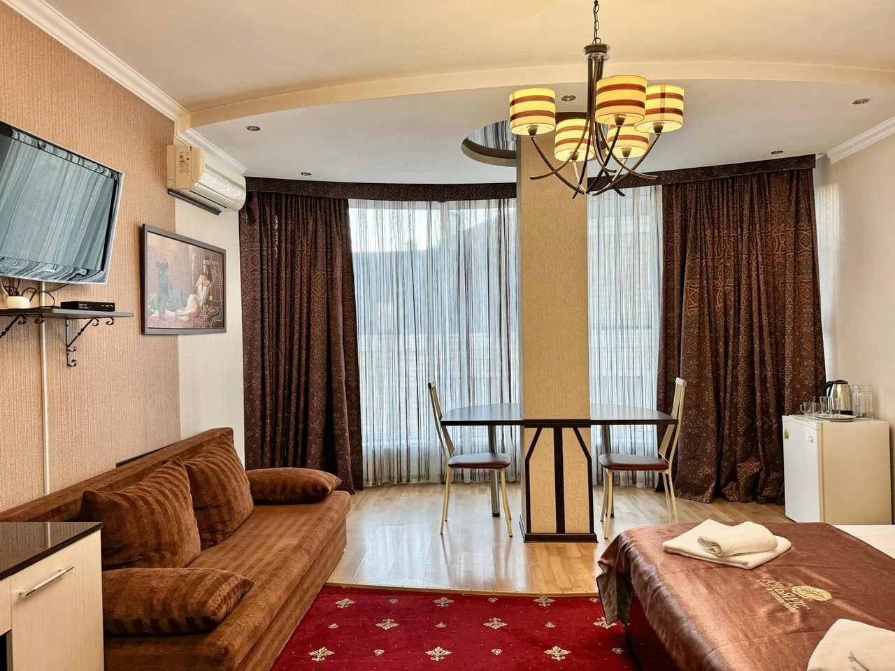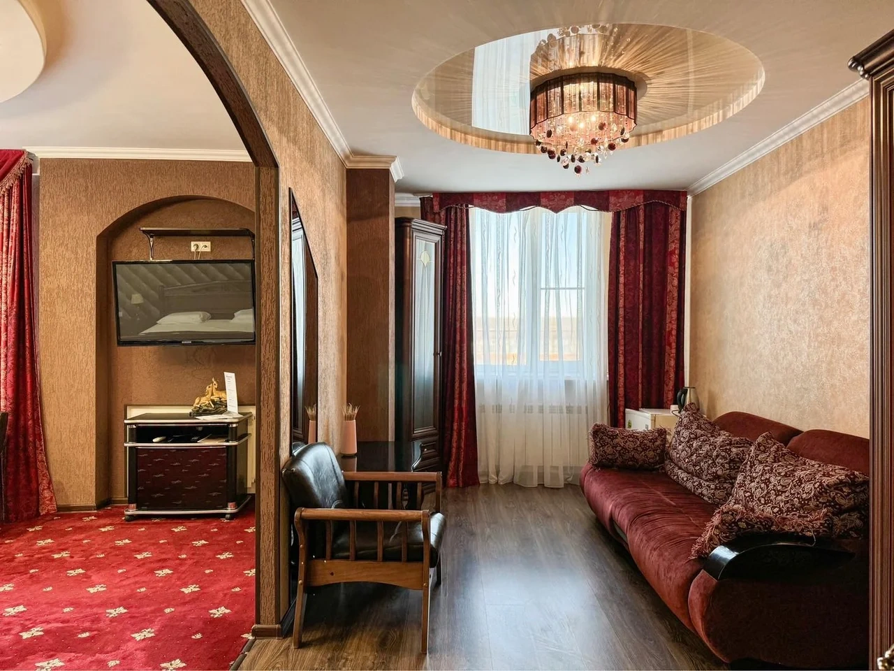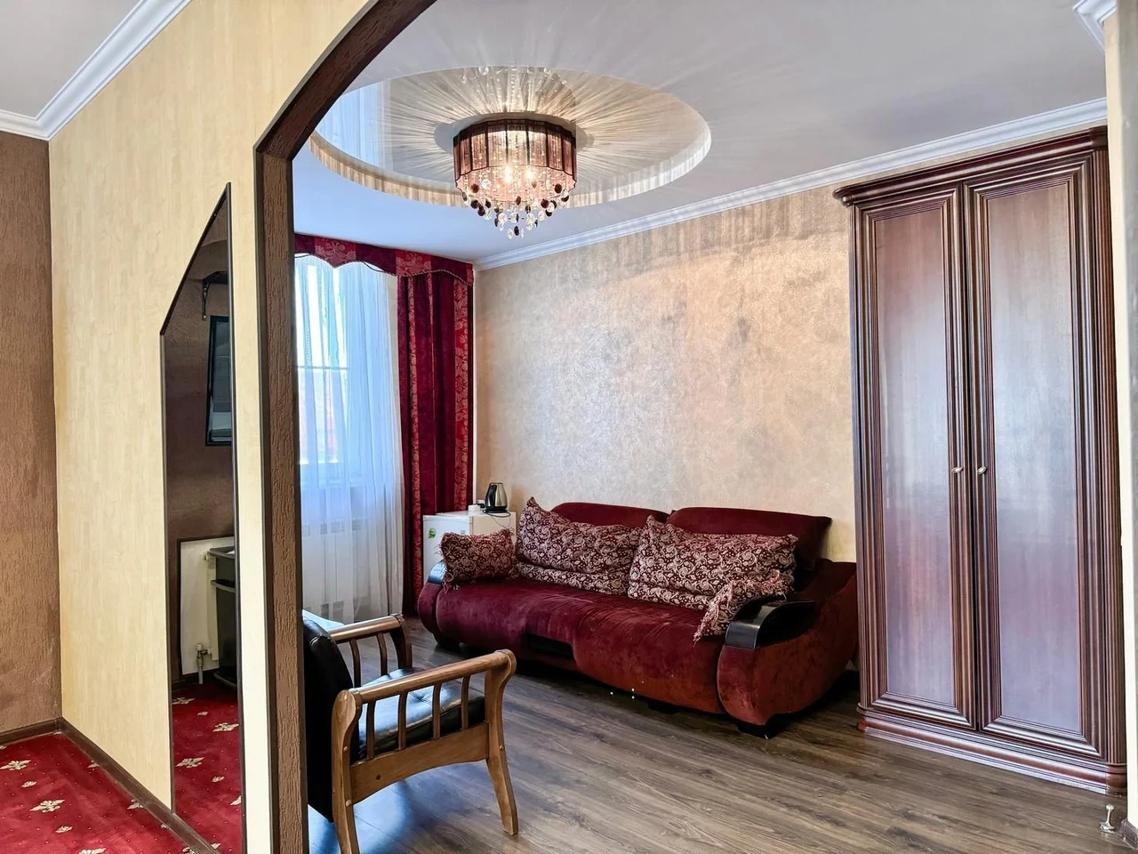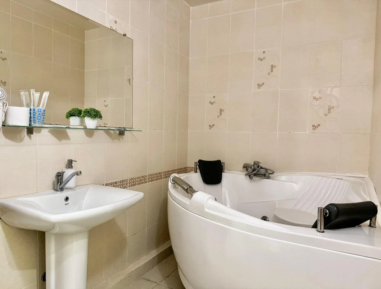 Все очень старое. Номер полулюкс. В ванной убитая не работающая джакузи. Я человек с инвалидностью, если туда залезла и пока принимала душ, риск упасть был велик. В целом все очень старенькое. Бронировала здесь, оставила комментарий, что бы подготовили и застелили постель ребенку, так как приехали поздно. Но на ресепшене не видели оплату номера, пришлось искать на почте подтверждение. Кровать никто конечно не застелил ребенку, и даже доп белья не приготовили. Пришлось звонить на ресепшен, просить белье и самим стелить. Второй раз сюда не приедем точно. Цена до таких условий завышена