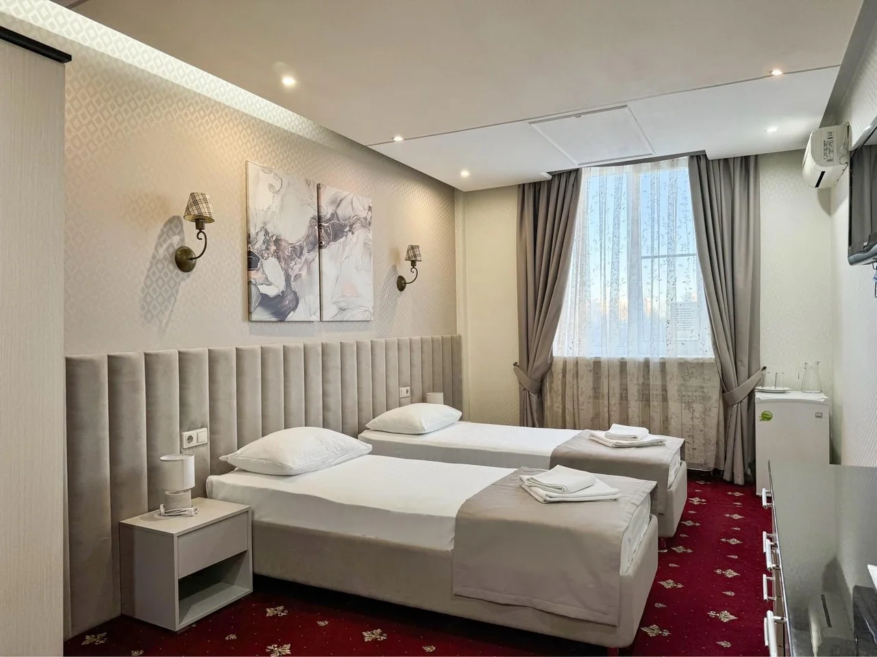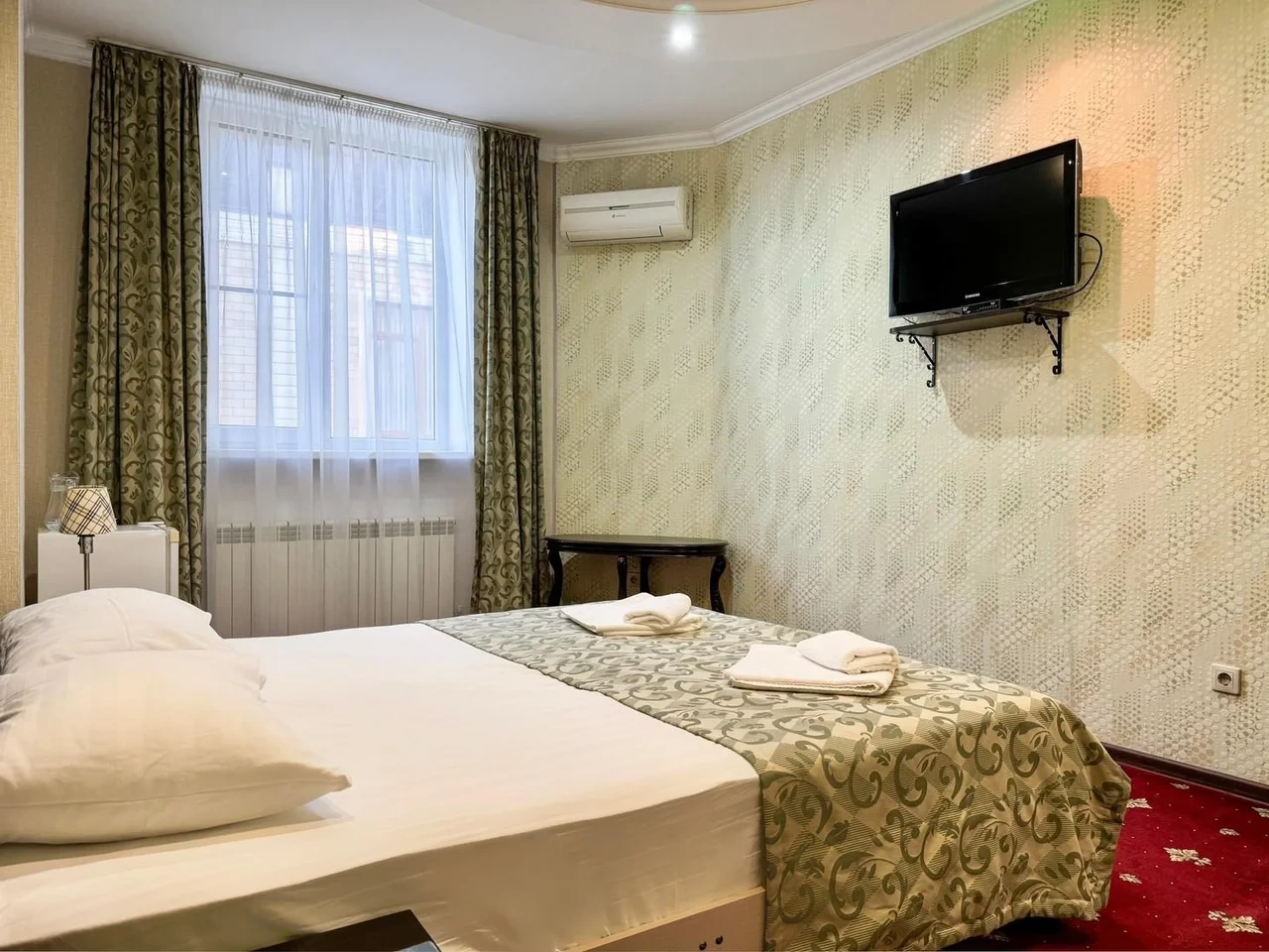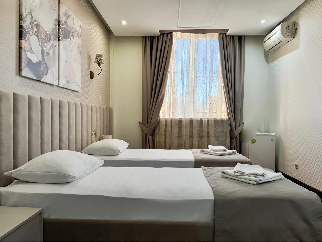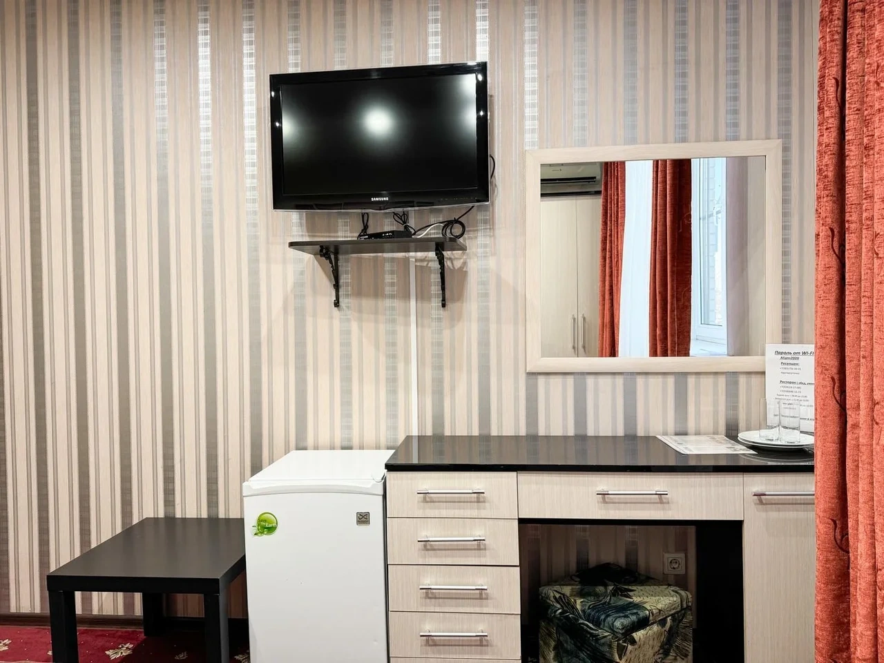 Номер отличный. Есть все необходимое. Кондиционер, чайник, холодильник, телевизор и др. Очень чистое и приятное постельное белье. У нас был Семейный номер. Мы довольны