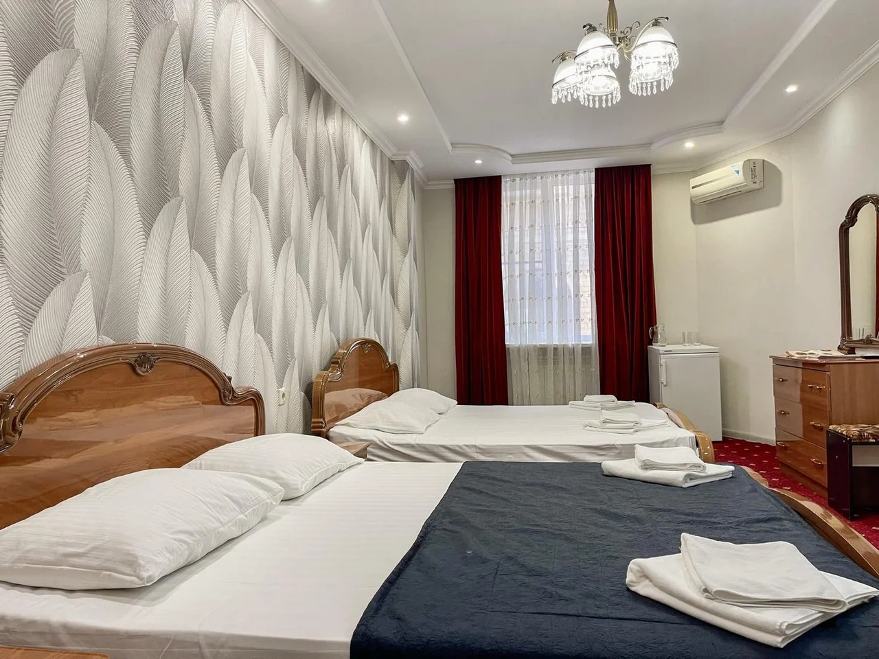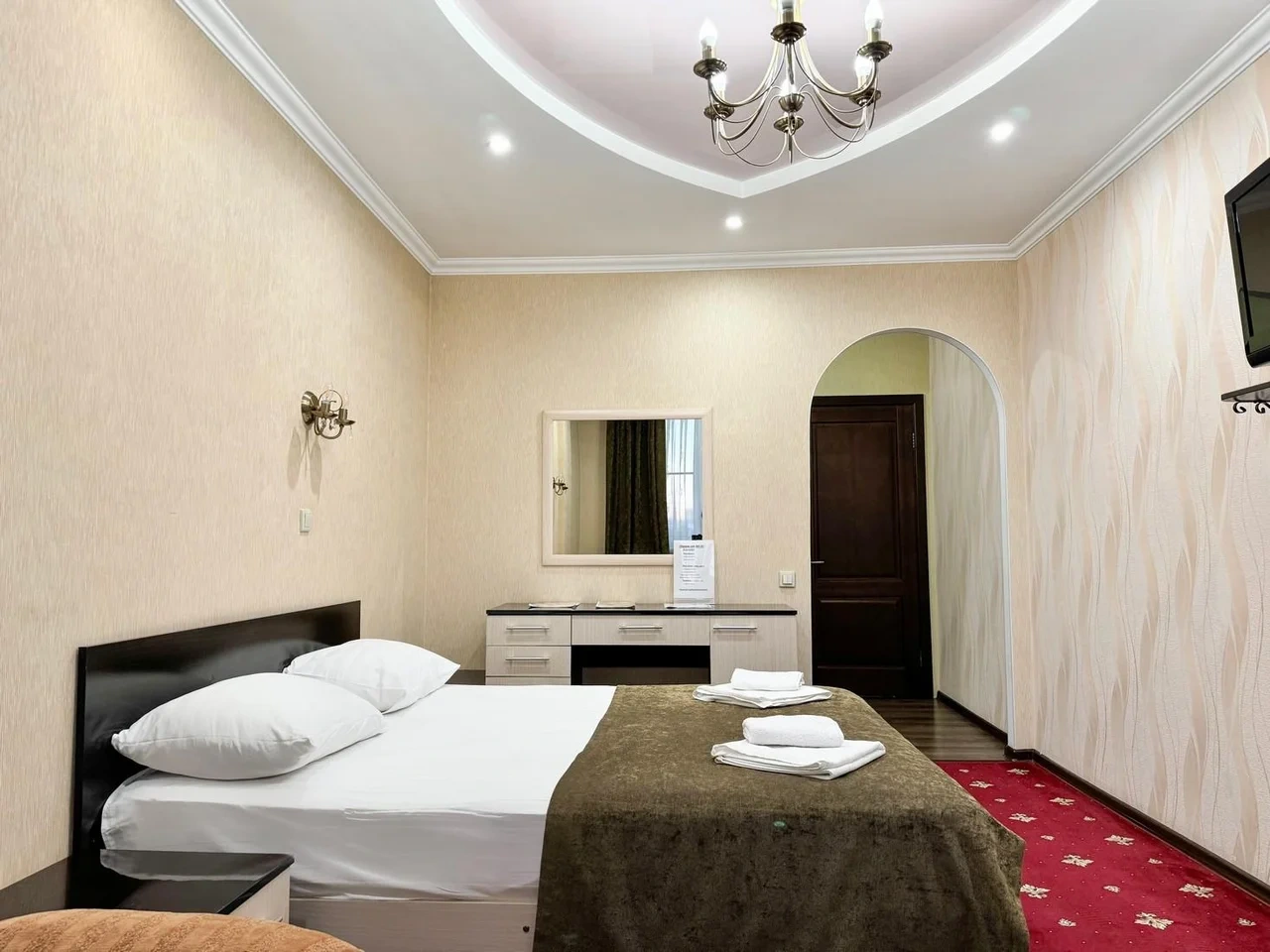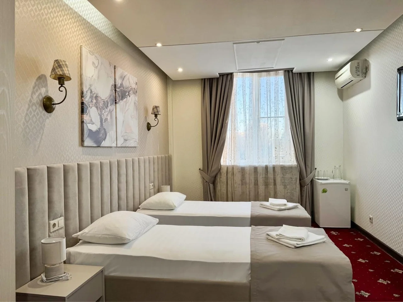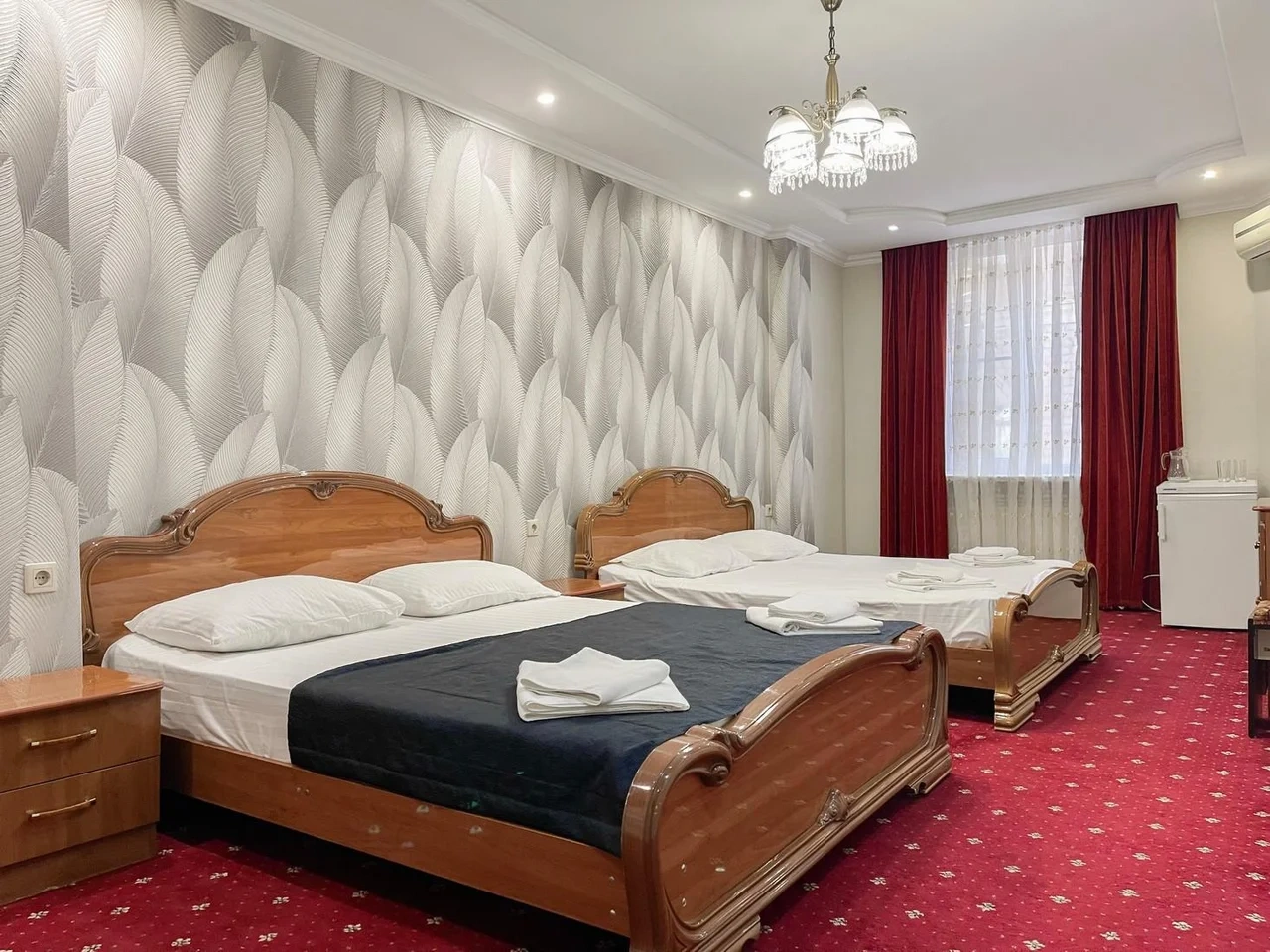 Номер отличный. Есть все необходимое. Кондиционер, чайник, холодильник, телевизор и др. Очень чистое и приятное постельное белье. У нас был Семейный номер. Мы довольны
