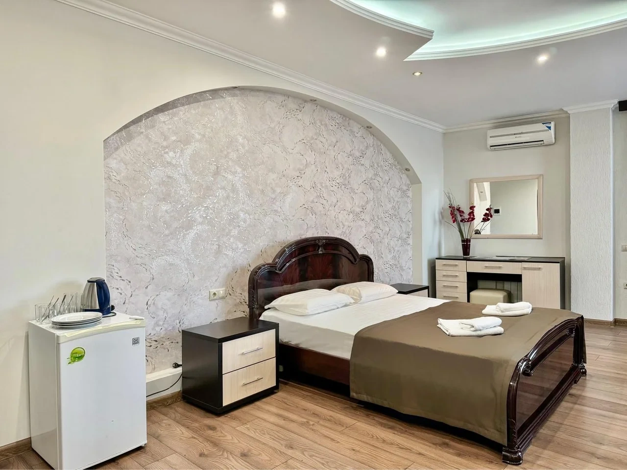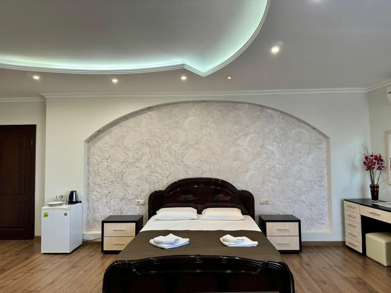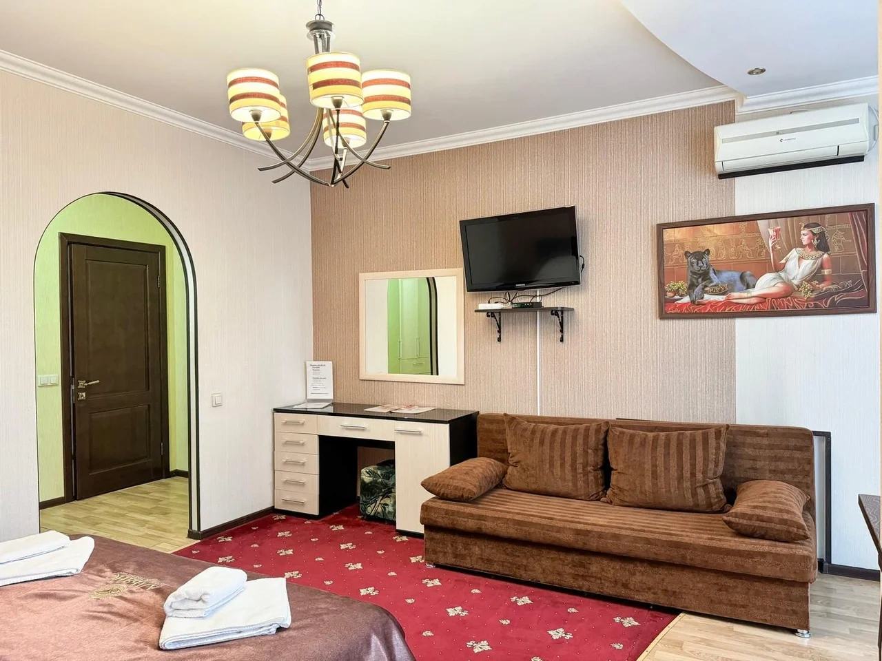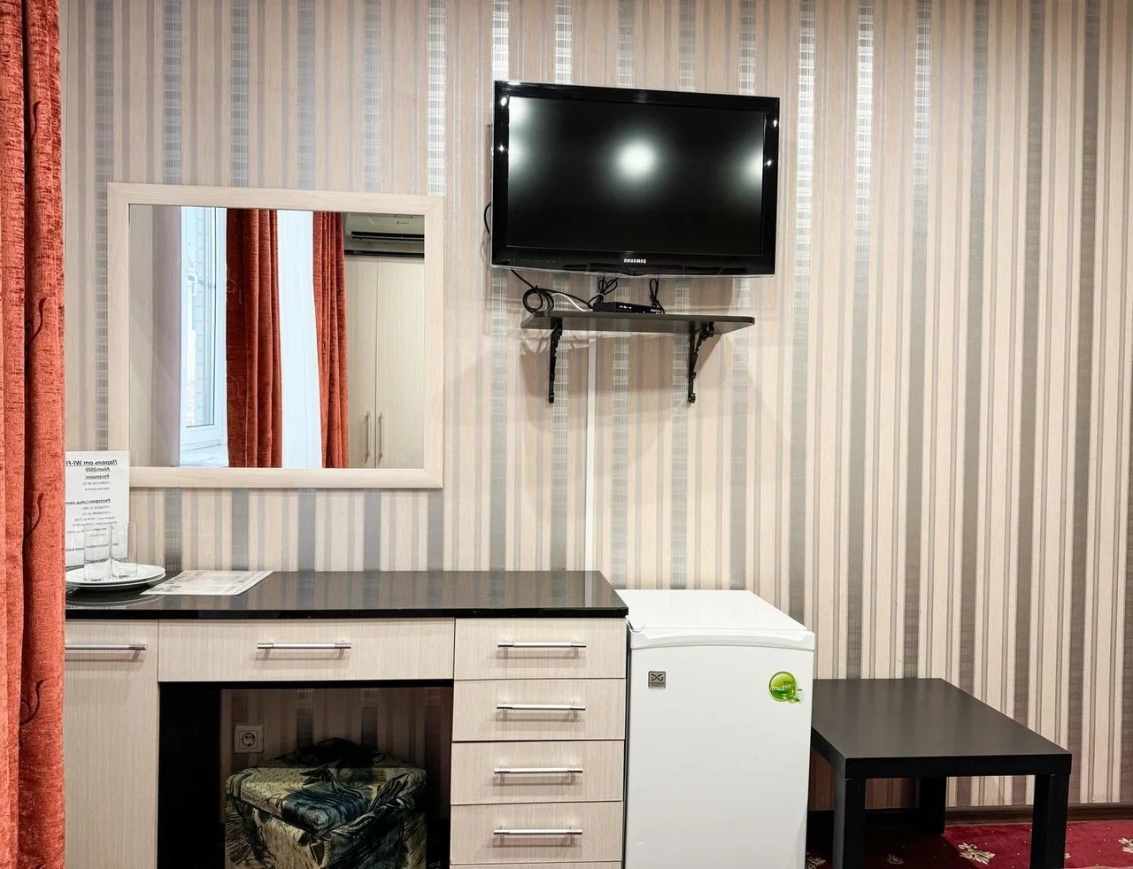 Номер отличный. Есть все необходимое. Кондиционер, чайник, холодильник, телевизор и др. Очень чистое и приятное постельное белье. У нас был Семейный номер. Мы довольны