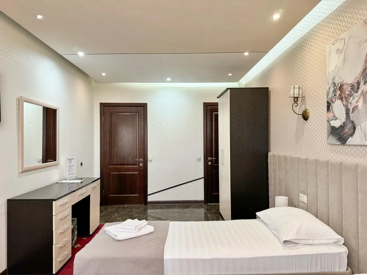Кровать была удобная, все чисто, отличная шумоизоляция, отличный нейтральный запах в номере. Все работало, что должно работать.