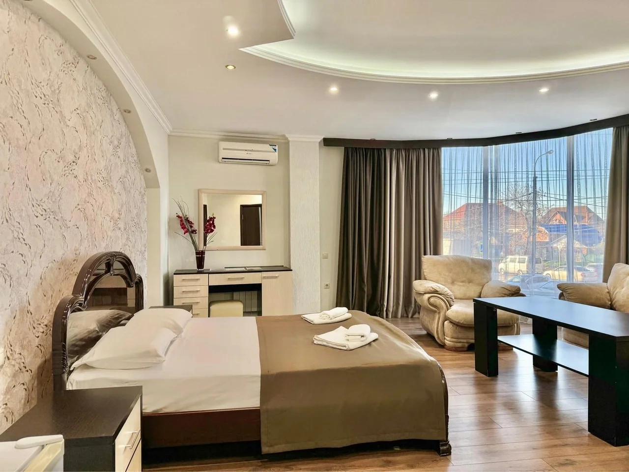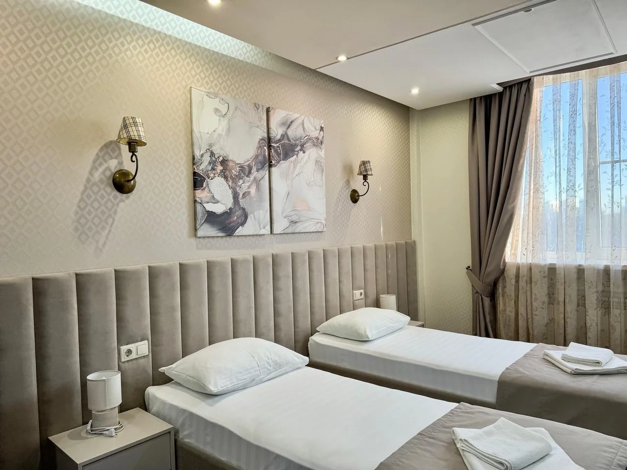 Большие просторные номера с панорамными окнами станут отличным поводом для прекрасного настроения на весь день! А высококачественные матрасы Askona подарят комфортный отдых!