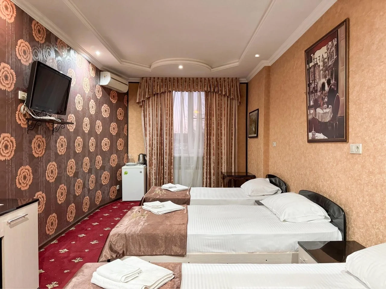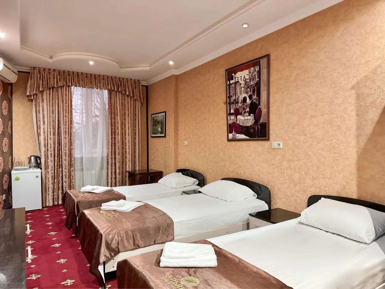 За свою цену нормально, но не 3 звезды. В санузле проходит какая то горячая труба, было жарко от неё. Мебель сильно бу, номер пошарпан