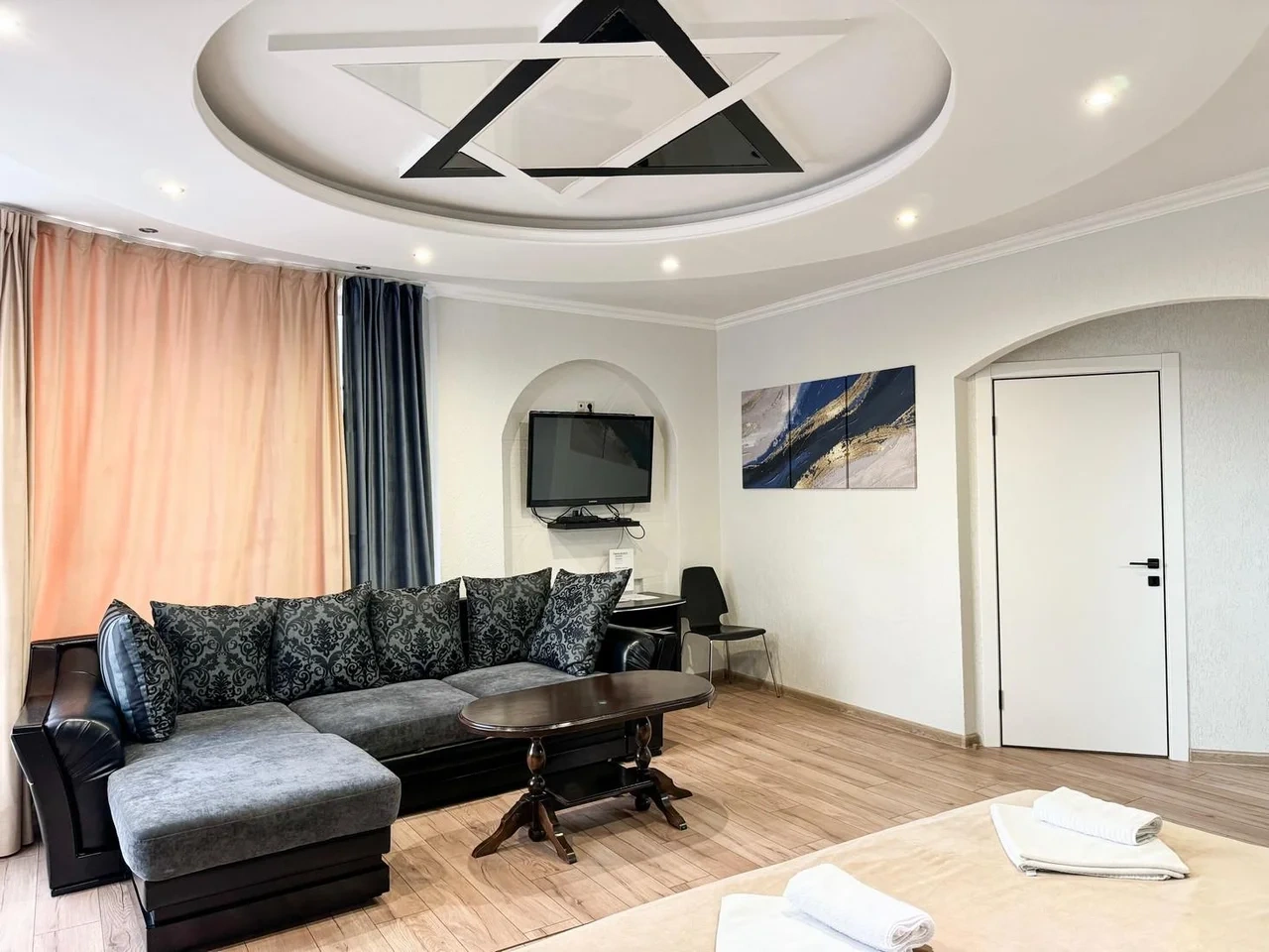 Кровать шикарная, бельё кристально белое и чистое. Ванная комната это бомба.