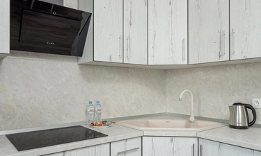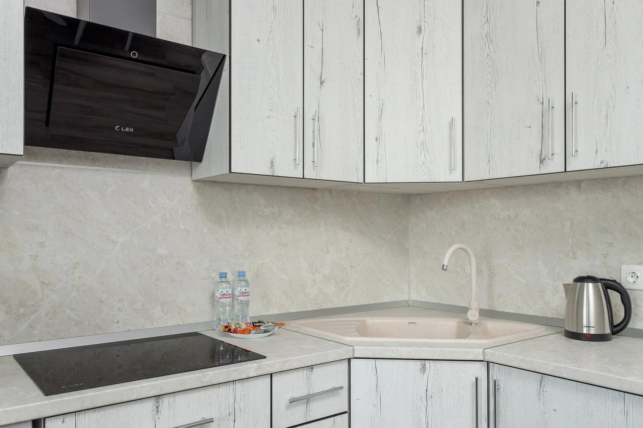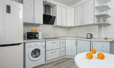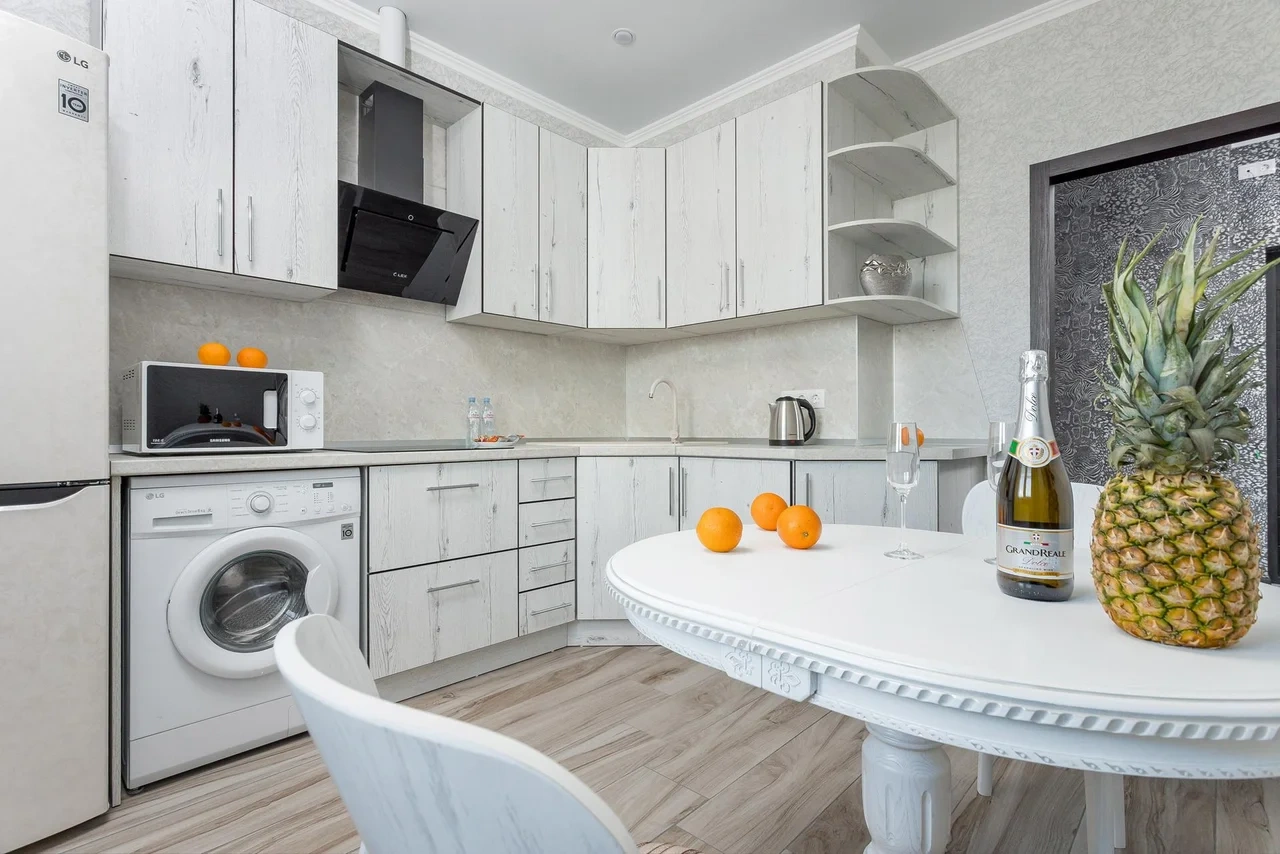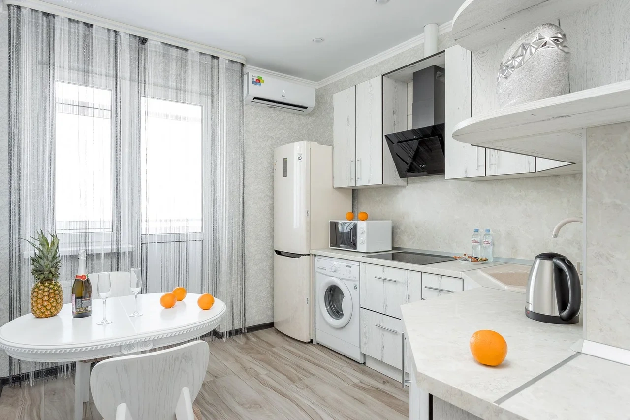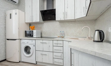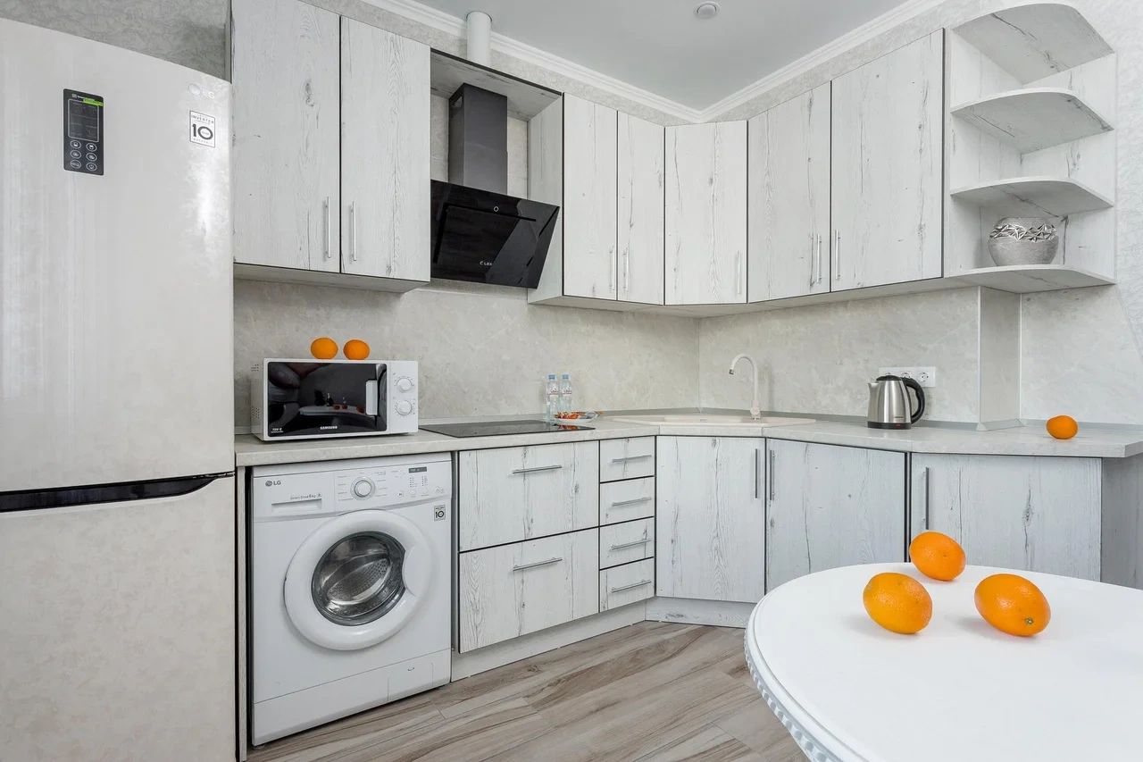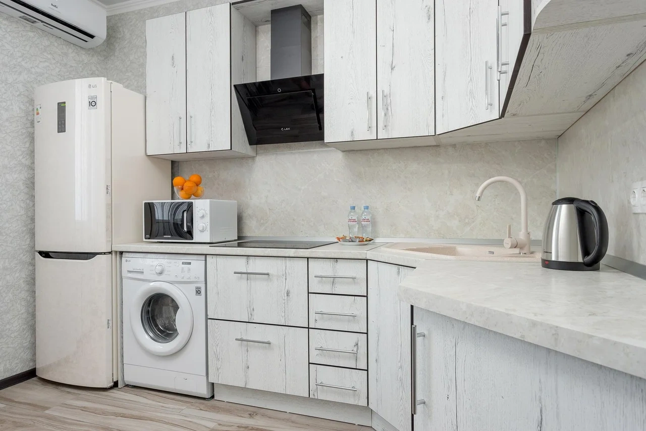 - бытовая техника (большой холодильник, микроволновая печь, чайник, стиральная машина, утюг, фен, ЖК-телевизор с функцией SMART-TV );