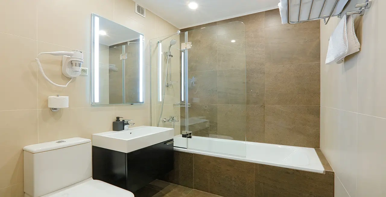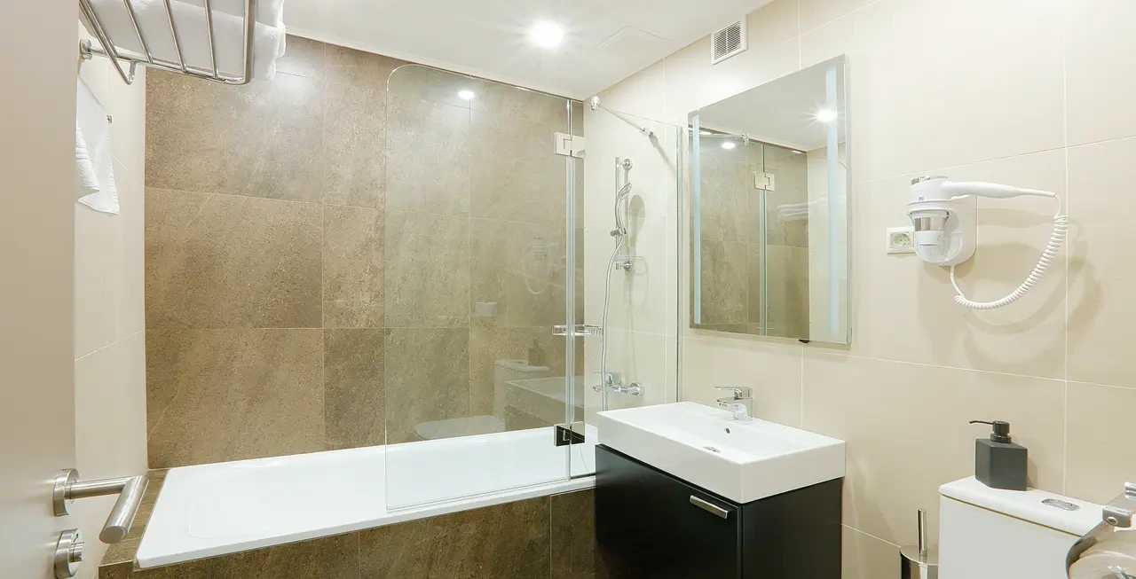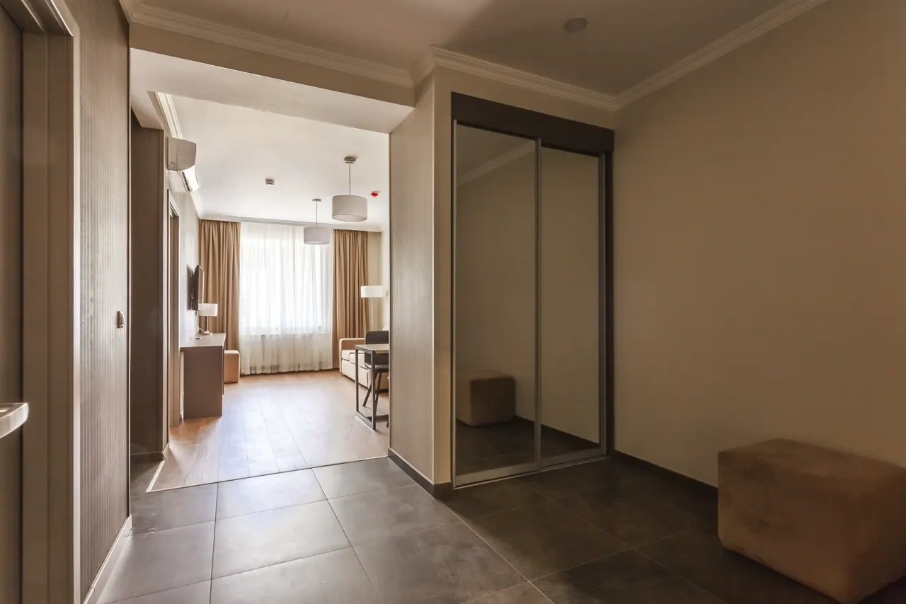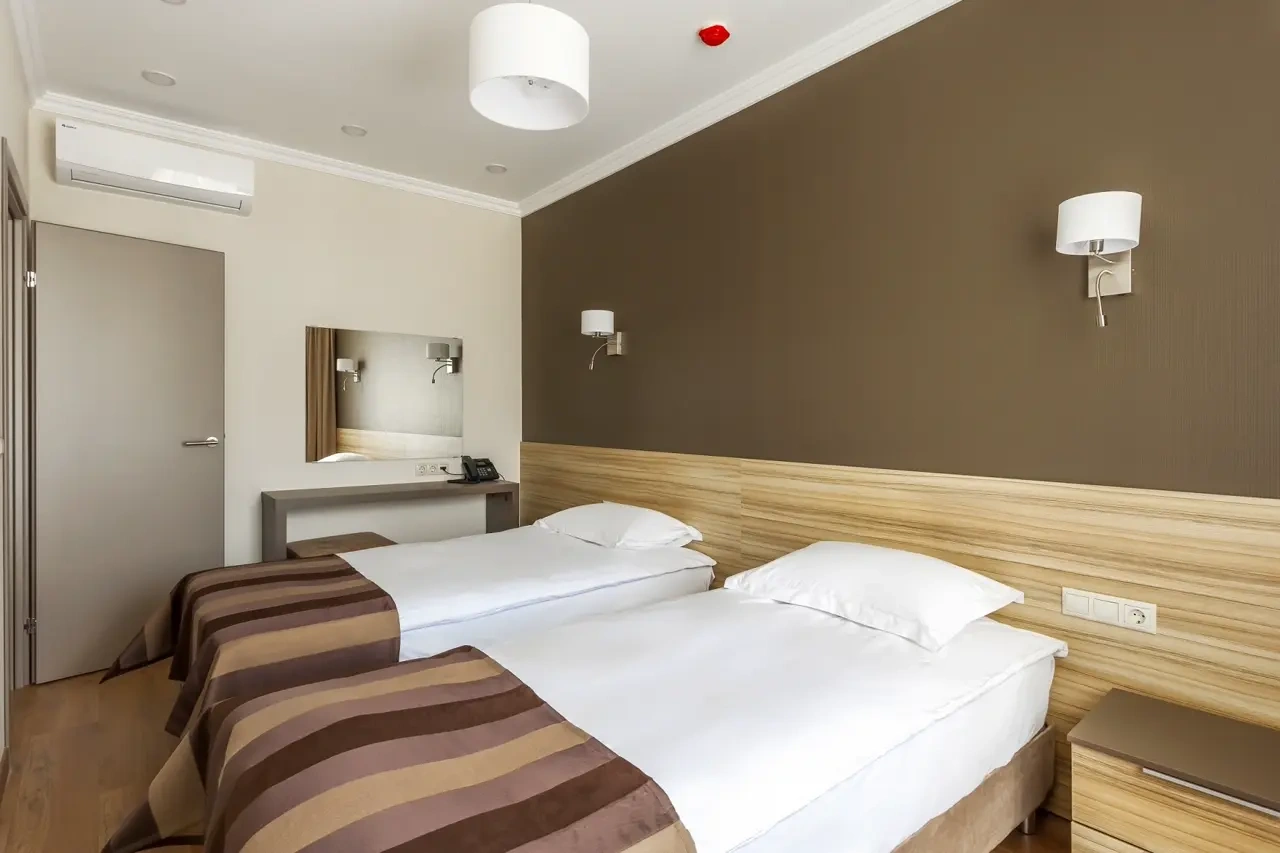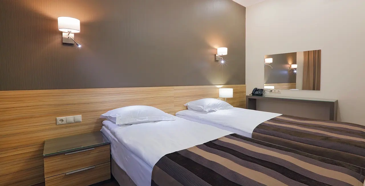 Апартаменты в которых предусмотрено все необходимое для комфортного проживания: спальня с двумя односпальными кроватями, гостиная с оборудованной зоной кухни. Современная функциональная бытовая техника: индукционная панель, микроволновая печь, чайник, холодильник, телевизор. Есть посуда и столовые приборы. В некоторых номерах предоставлена духовка. В каждом номере есть своя ванная комната с душевой кабиной или ванной.