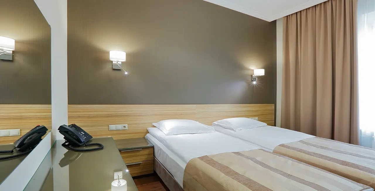 Неизменно актуален для свадебных путешествий, романтических вечеров и незабываемых поездок. Каждый номер создан в индивидуальном дизайне, оснащенный всем самым необходимым для комфортного пребывания: двухспальная кровать, диван, телевизор с кабельным телевидением. Полностью оборудованная кухня укомплектована техникой и посудой. В каждом номере есть своя ванная комната с душевой кабиной или ванной, имеется фен.