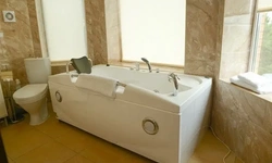 Удобная кровать,удивила большая ванная комната с джакузи и витражнвми окнами ,красивый холл.