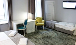 Двухкомнатный семейный номер с двуспальной кроватью, небольшим диваном-кроватью и микроволновой печью. Изысканная меблировка и декор, наличие WiFI и телефонной связи. Номер оснащен мини-холодильником, электрическим чайником, чайными принадлежностями, телевизором , феном ,кондиционером. Возможно для размещения семей с маленькими детьми.Постельное белье и пушистые полотенца помогут создают домашнюю атмосферу. Ванная комната оснащена немецким сантехническим оборудованием.Площадь номера 22 кв.м.