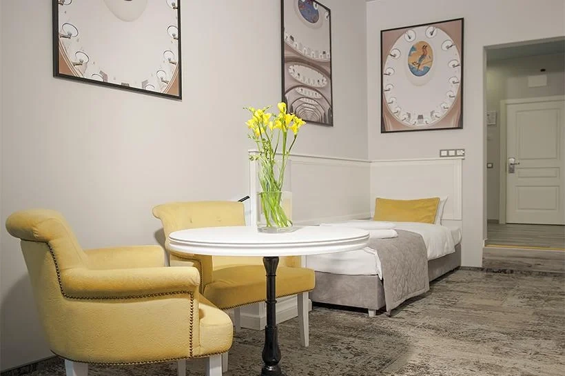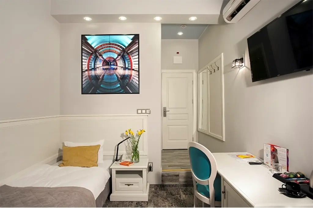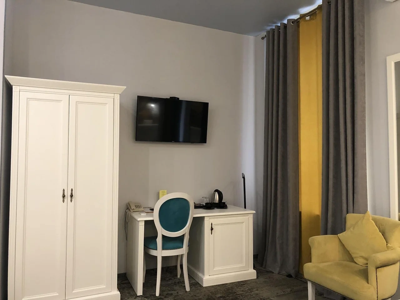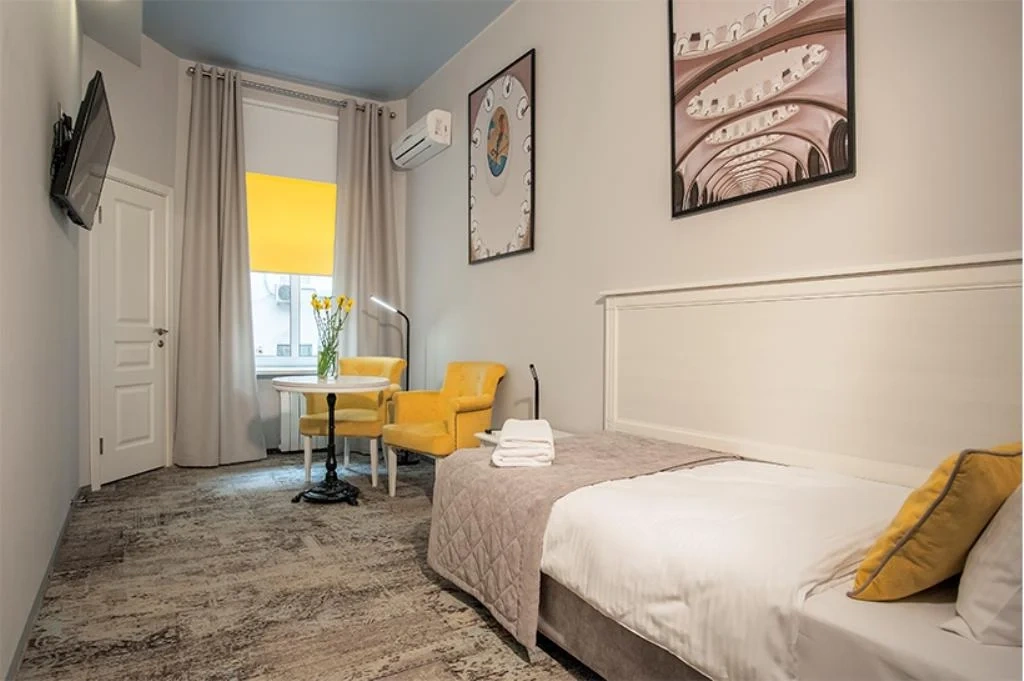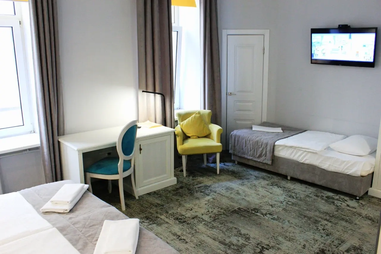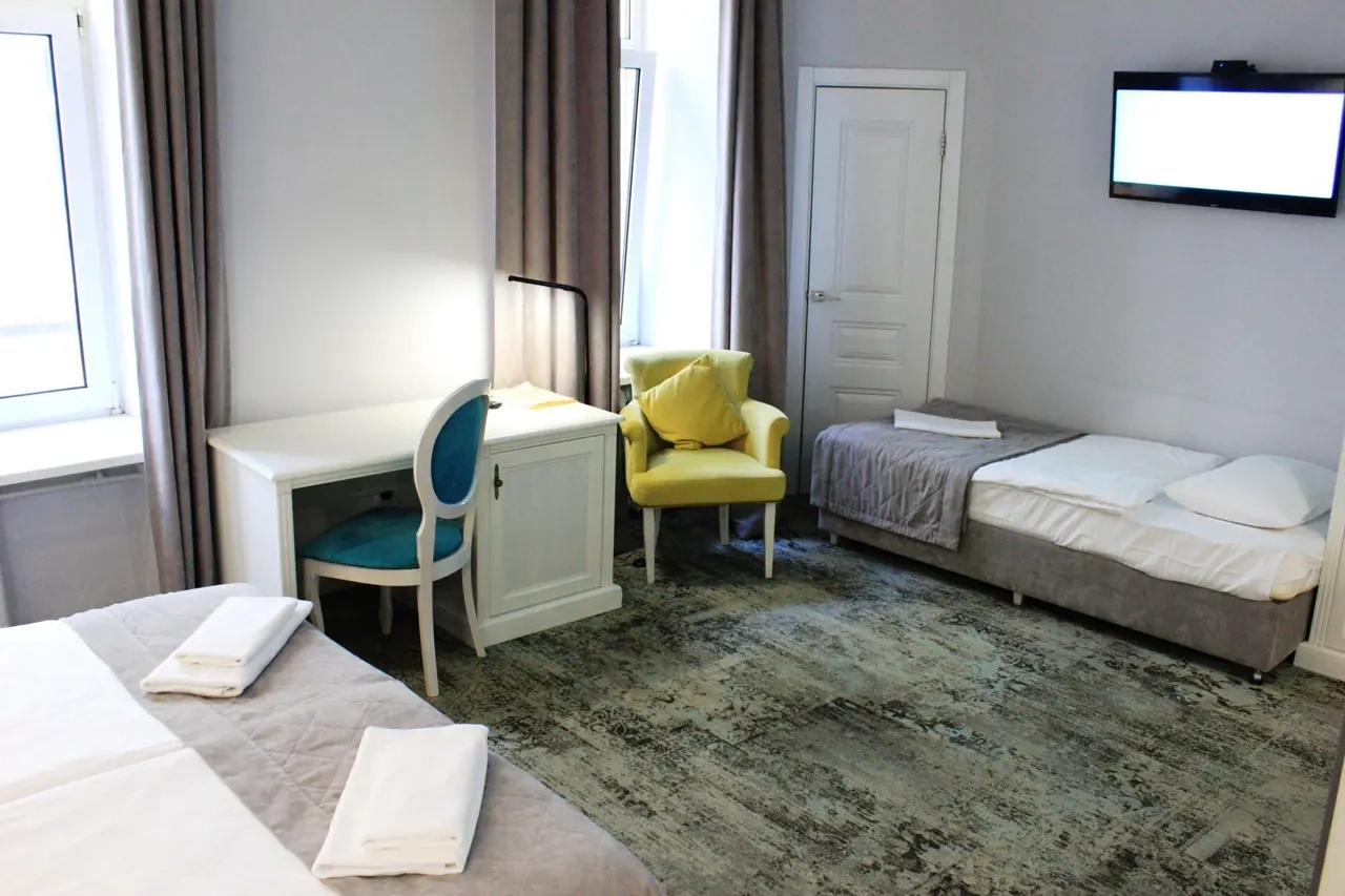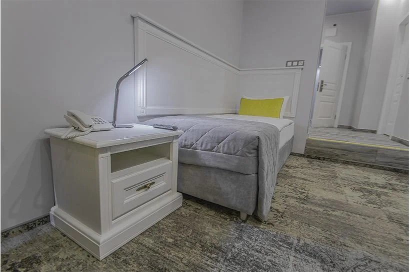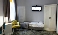 Современные номера для одного гостя с возможностью размещения дополнительного места. Номера оснащены мини-баром, электрическим чайником, чайными принадлежностями, телевизором , феном ,кондиционером. Новизна и чистота номера порадует самого взыскательного путешественника. Наличие пушистых полотенец помогут создают домашнюю атмосферу. Ванная комната оснащена немецким сантехническим оборудованием.