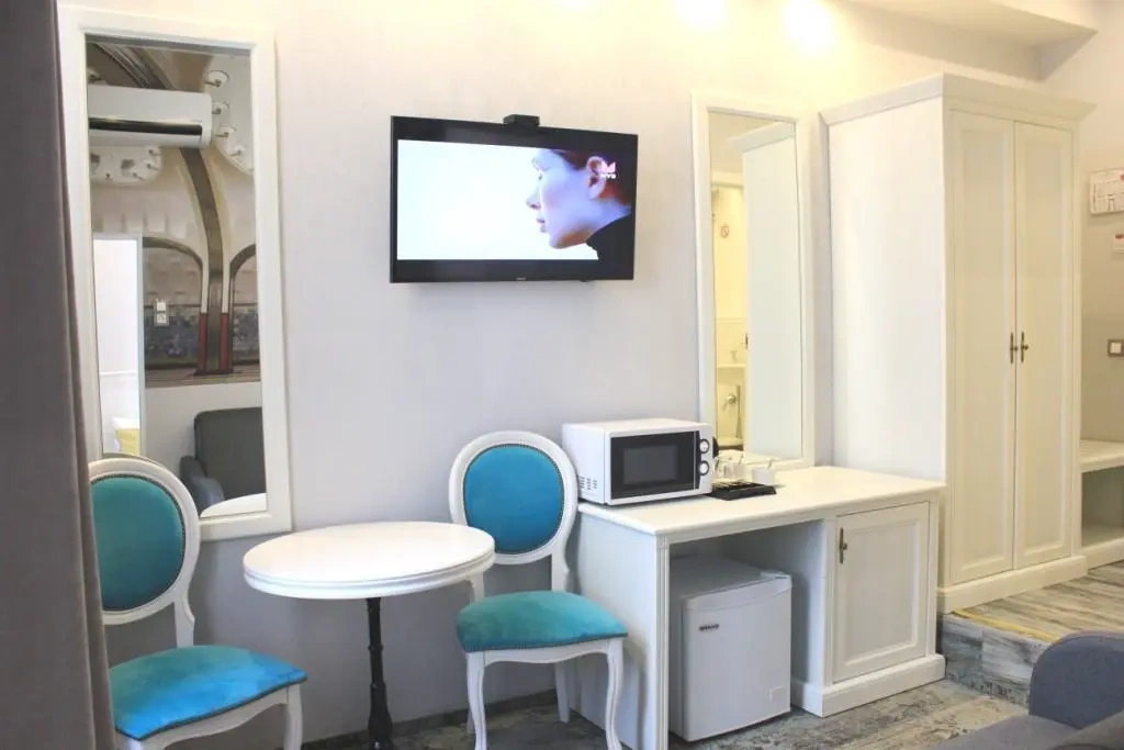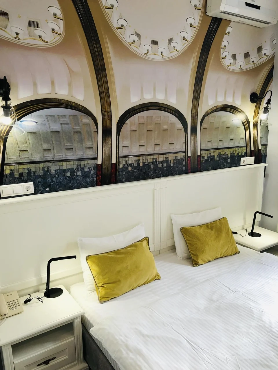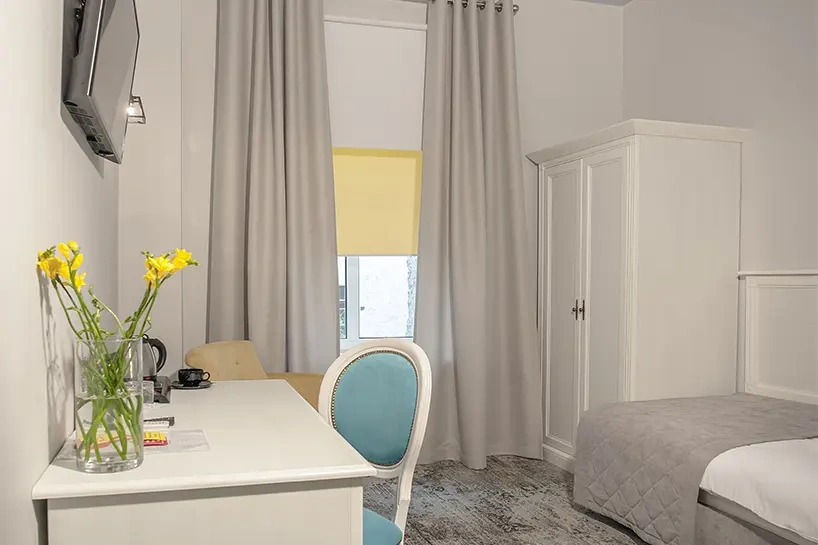Современные двухместные номера площадью 22 м2 в современном стиле с новой мебелью и оборудованием . Номера оснащены всем необходимым для комфортного проживания: телефон с доступом в город, телевизор, кондиционер, электрический чайник с чайными принадлежностями, мини-бар ,фен. Большая кровать (Double bed ) 180х200 и новое постельное белье. Ванная комната оснащена европейским сантехническим оборудованием. Мягкие полотенца приятно порадуют гостей.