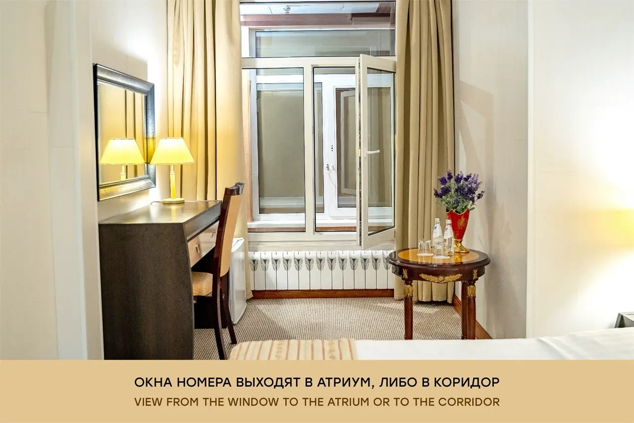 Путешествуете вдвоем? Один из лучших вариантов размещения — комфортный двухместный номер категории «улучшенный». В компактном номере нашлось место не только для комфортной двуспальной кровати с ортопедическим матрасом, но и для полноценной рабочей зоны с удобным столом и высокоскоростным беспроводным интернетом. Дизайн прост и лаконичен, но благодаря ему небольшое по площади помещение выглядит просторным и светлым. Ценные вещи и документы можно оставить в сейфе. Номера укомплектованы мини-баром, чайной станцией, телефоном, феном, гладильными принадлежностями и халатами. Ежедневно при жилой уборке происходит пополнение гигиенических принадлежностей, питьевой воды, чая и сахара. Мини-бар не входит в стоимость номера и оплачивается отдельно. Под запрос предоставляются косметический и бритвенный наборы. Окна номера выходят на тихую улицу, внутренний двор и на город, так что можете быть уверены: вашему отдыху не помешает шум.