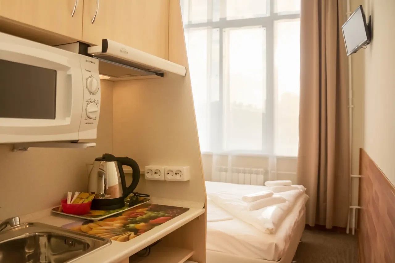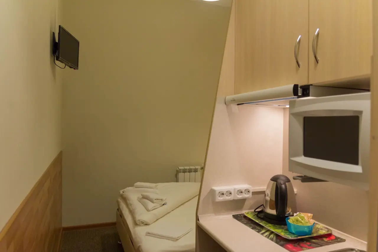 В числе удобств телевизор и чайник. К услугам гостей собственная ванная комната.