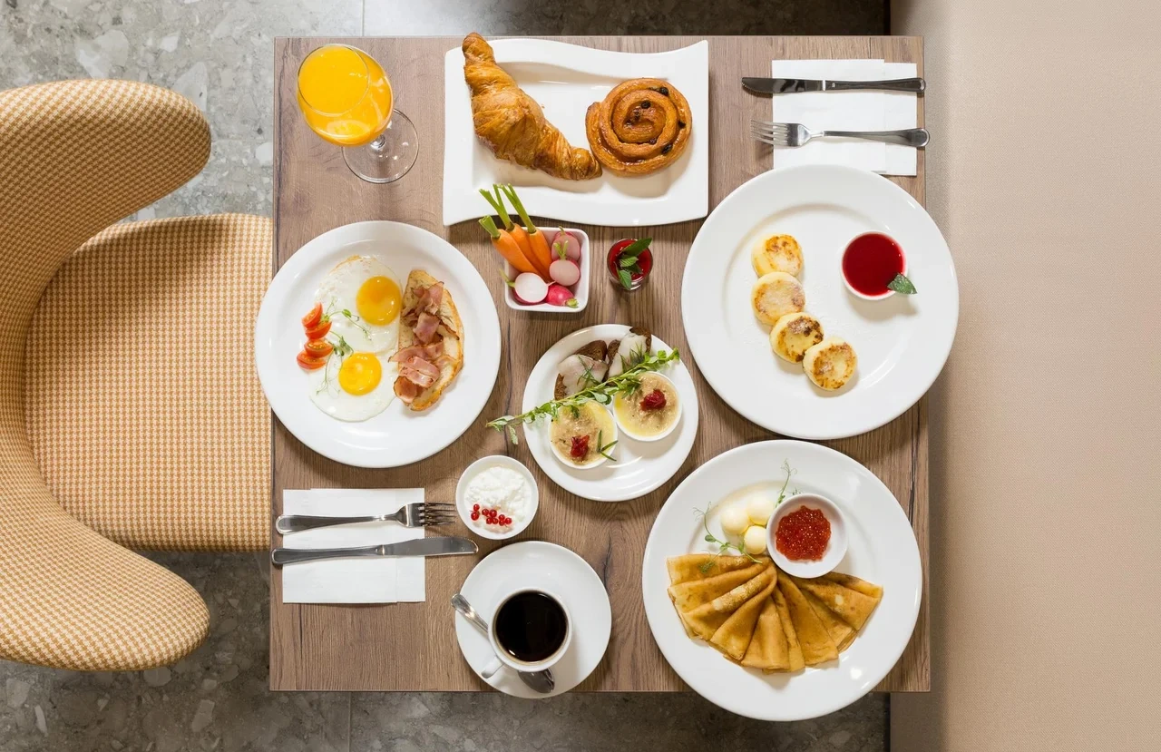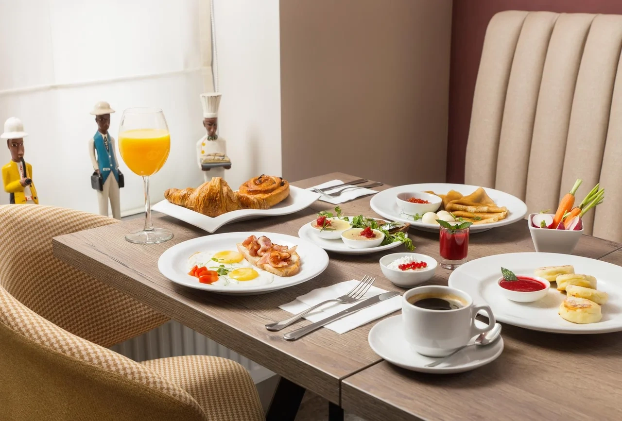 Ресторан КОКОФРЕШ на первом этаже отеля предлагает вкусные завтраки для гостей 1 АРТ ОТЕЛЯ и меню a la carte для всех желающих.