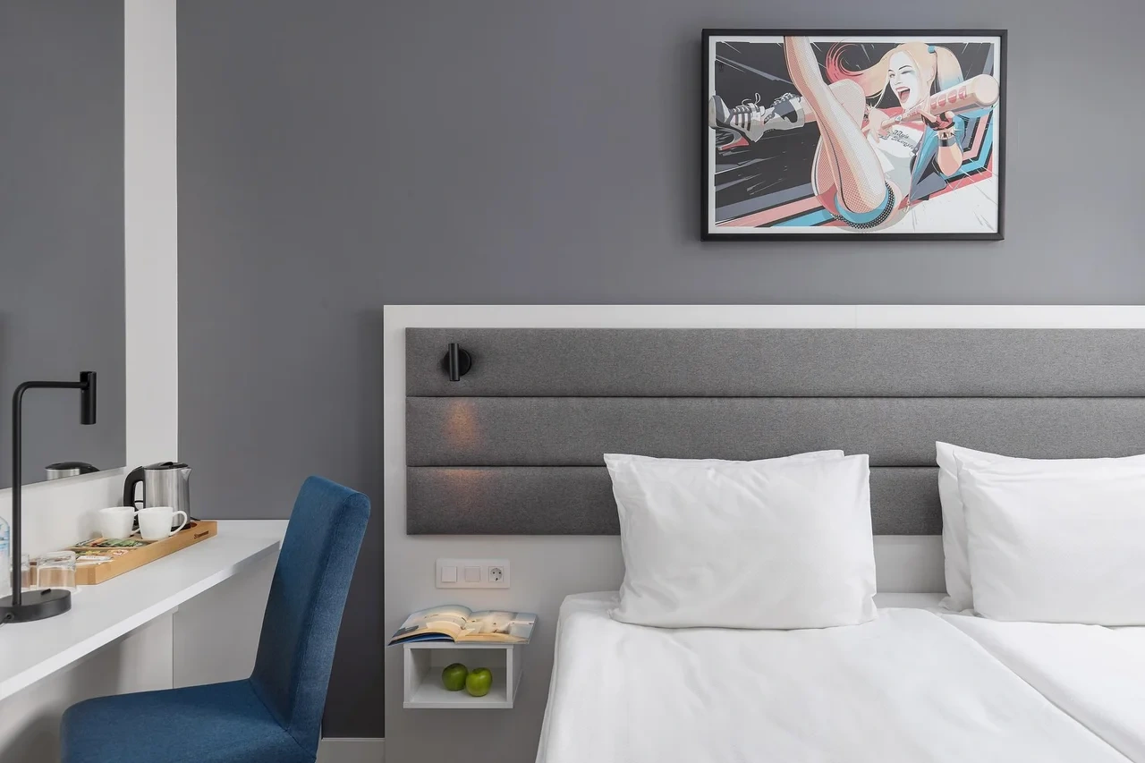 Москва – культурный и деловой центр. Богатая история города, эклектичная архитектура, театры, музеи, парки, бизнес и развлечения – все это наполняет мегаполис особой энергией. И наша задача, чтобы Вы ощутили энергию Москвы в красивом месте. Дизайн пространства 1 АРТ ОТЕЛЯ благородно минималистичен, но ярок, наполнен динамикой и характером. Номера декорированы оригинальными работами современных художников.