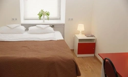 Всё как заявлено и соответствовало фото: большая кровать в центре, сбоку шкафчик и ванная комната с душем и туалетом
