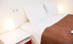 Матрасы хорошие, большая кровать + двухъярусная. Пост.белье чистое, белоснежное. Чайник в номере. Единственное - в номере не было посуды, кроме 3х стаканов (грязноватых), хотелось бы пару тарелок/чашек. По соотношению цена-качество всё супер.