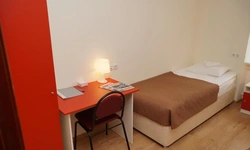 В номере протоптанный ламинат. Простыни маленькие и их невозможно заправить за матрац. Просто лежат сверху. Соответственно ночью сбиваются. Шторы повешены лицевой стороной на улицу. Нет холодильника. Уборка на 3-. Везде шерсть предыдущих постояльцев. Отдельно отмечу душевую "кабинку". Это апофигей жлобства - раздавленный пластиковый поддон со шторкой. Туалетной бумаги не было. Принесли после звонка на ресепшен. Завтрак с 8, но в 8 буфет закрыт. Пришлось идти на ресепшен, чтобы разбудили буфет. Буфет открыли с видом полным недоумения - что от них хотят в такую рань. Соответственно еда холодная и - "ну давайте погрею в микроволновке". При этом цена за номер не меньше чем в других гостиницах.