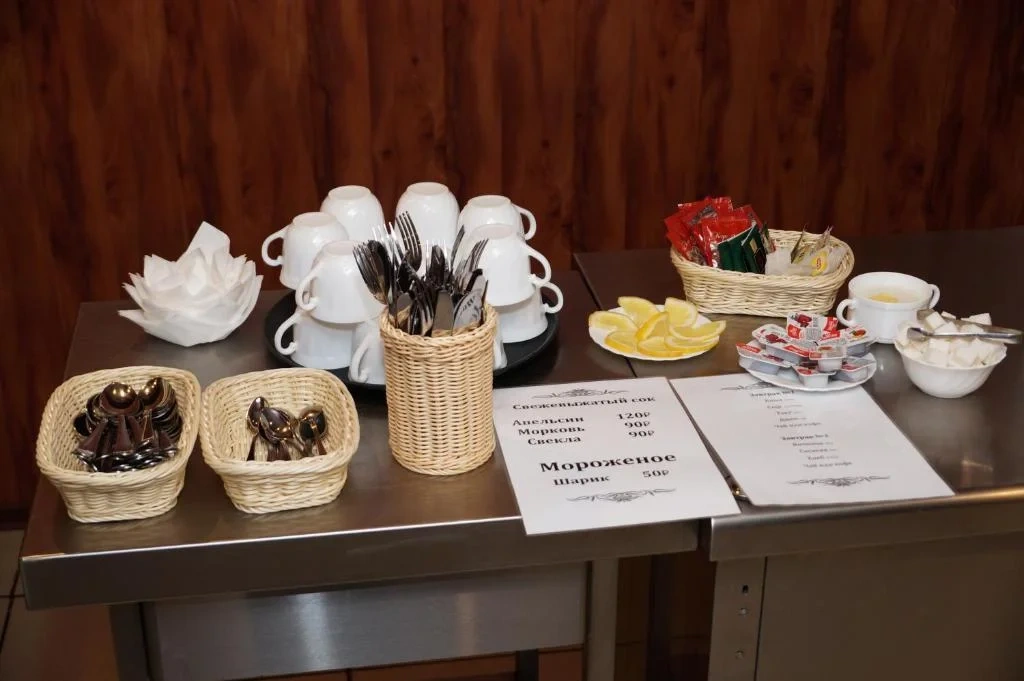 Брала завтрак. Шведский стол: сосиски, рис, гречка, хлопья, каша, яйца, омлет, бутерброды, чай, кофе, молоко. Лимон, сахар, соль- всё присутствовало. Свежие продукты и вкусная еда