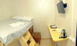 Место атмосферное,особенное. Если вы привыкли к отелям с ортопедическими матрасами,сатиновому белью и завтраку в номер,то нет) А для усталого путника оазис. Отзывчивый администратор, общий душ,чистый с теплой водой,уютный номер с чайником,микроволновой,тапочки,чистое постельное бельё,полотенце,тарелка,кружка. Во дворе игривые котята и павлин)) Для ожидания рейса в течении суток идеально.