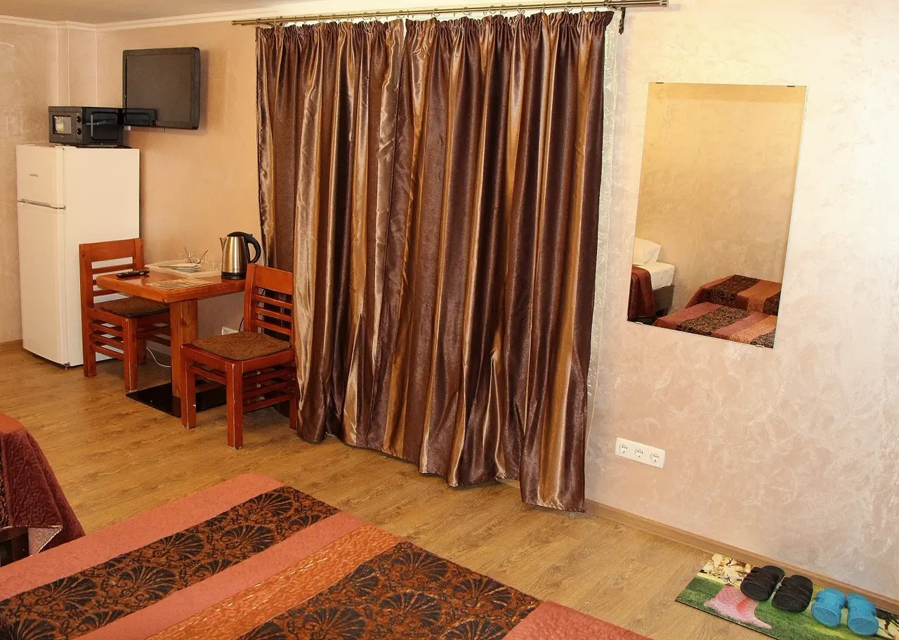 Номер очень понравился. Было чисто, в номере есть холодилник, чайник, микроволновка.
