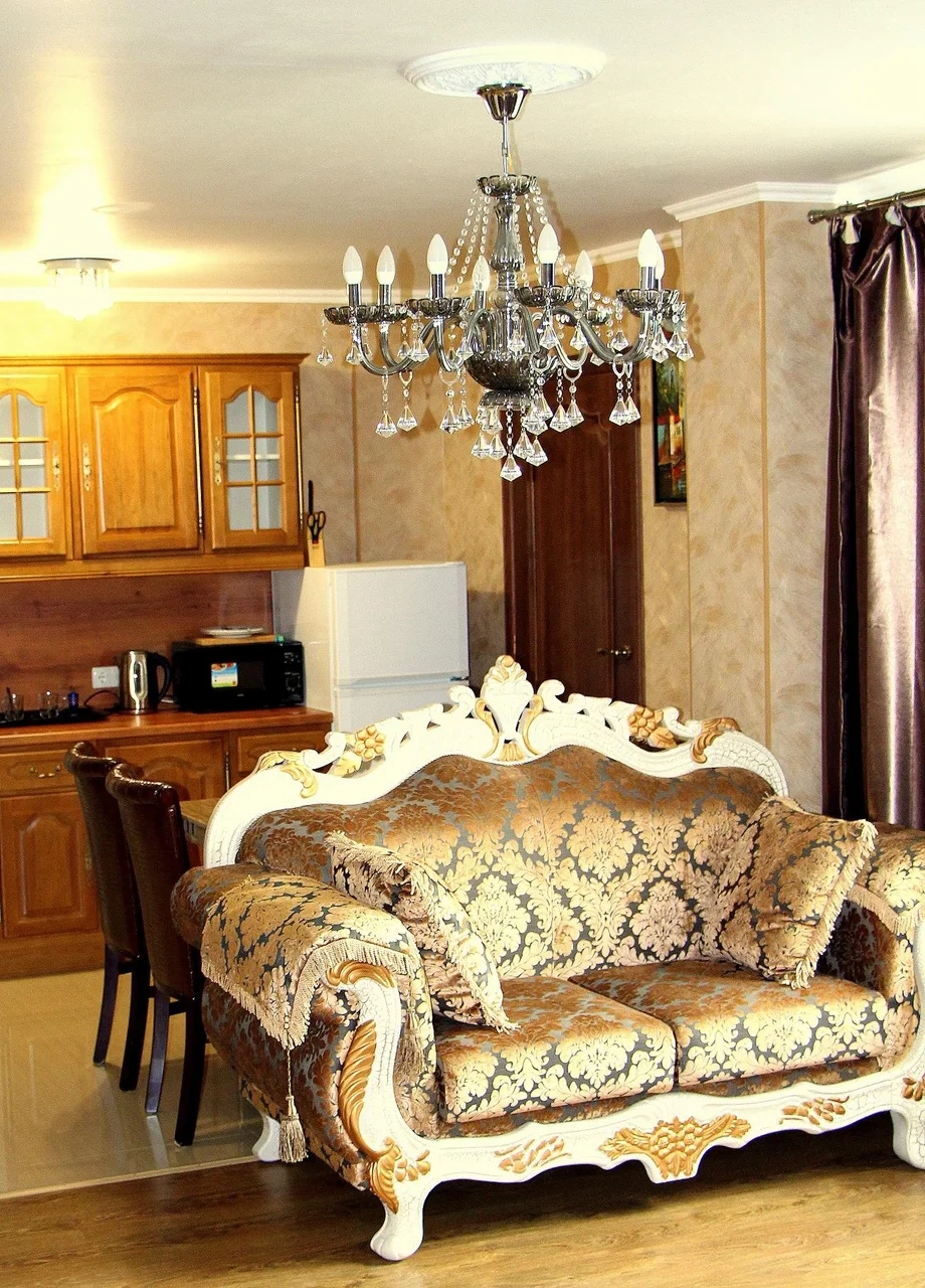 Нет лифта, крутые лестницы, не удобно подниматься с чемоданом. Ванна с туалетом расположены на первом этаже. Еда экстреной заморозки не вкусная.