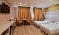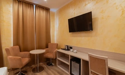 Номер с двумя односпальными кроватями-трансформерами. Есть рабочая зона и зона отдыха Площадь номера: 26 кв. м.