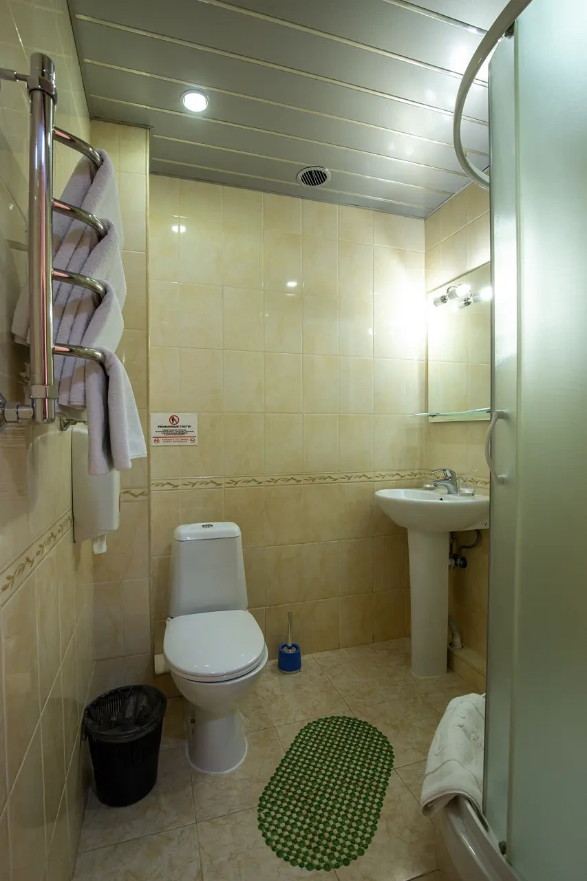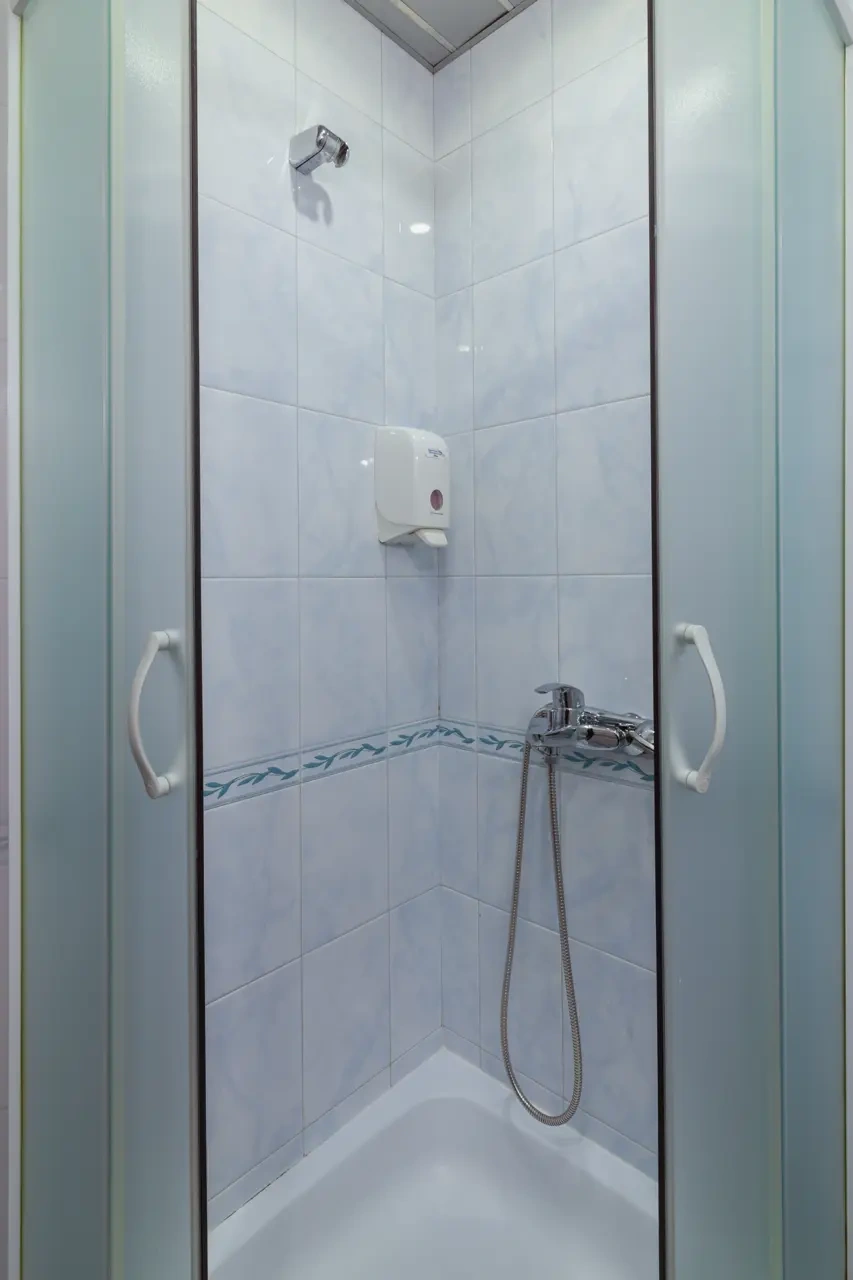 Небольшие и уютные номера с телевизором для бюджетного проживания. Душевая кабина и санузел на 2 номера в блоке, предоставляется фен (по запросу) и бесплатные туалетно-косметические принадлежности. Кондиционер над входом в блок/