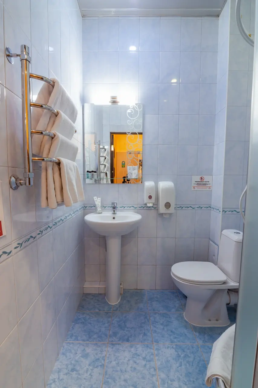 Номер стандарт ужасный, уборка не производится как будто совсем - в санузле на зеркале лежал чей то ржавый станок, кабинка душевая до конца не закрывается; постельное белье вызвало сомнение в свежести, были крошки какие-то, само белье порванное и желтое от старости; при замене на наматраснике увидела кучу чёрных длинных волос, пол грязный; на ресепшн вялая амеба отказалась предоставить фен, хотя я писала предварительно заявку; полотенца воняли какой то дрянью и с них лез пушок, который оставался на теле