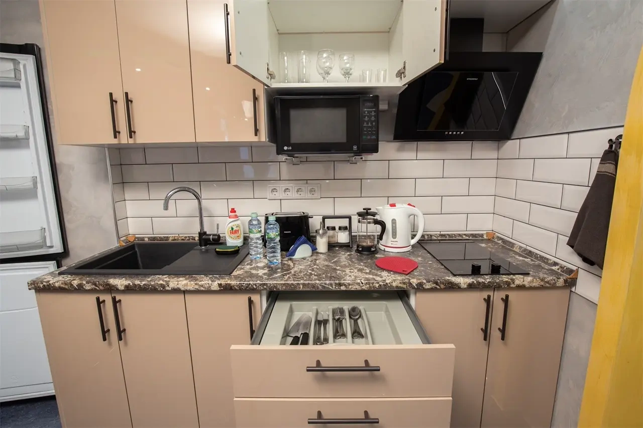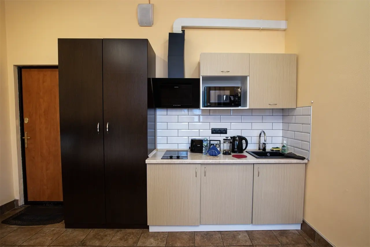 Уютная гостиница, персонал разрешили хранить багаж в камере хранения. Девушка Марфа на ресепшен даже раньше заселила нас, прекрасный номер подобрала, я была с сыном, она именно нашла по моей просьбе все, рассказала где что поблизости. Вот наш номер. Близко к метро находится. 15 минут пешком, 4 минуты на такси. ТЦ рядом две минуты. Шоппинг, кому надо. Внизу продуктовый магазин. В номере кофемашина, капсулы, вода. Есть абсолютно все, Что нужно за адекватные деньги. Рекомендую